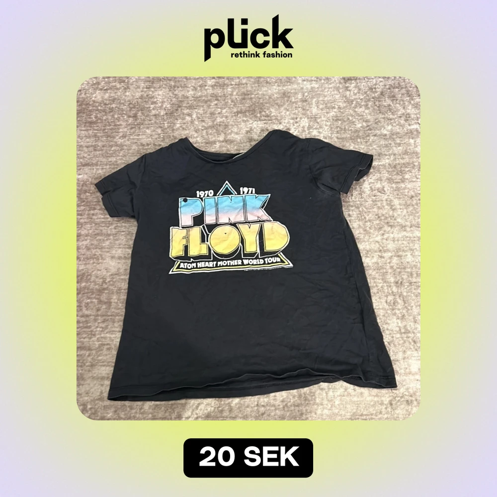 Säljer en svart Pink Floyd t-shirt från H&M med färgglatt tryck på framsidan och turnélista på baksidan. Perfekt för musikälskare! T-shirten är i bra skick och har korta ärmar. Jag säljer den för att den är för liten