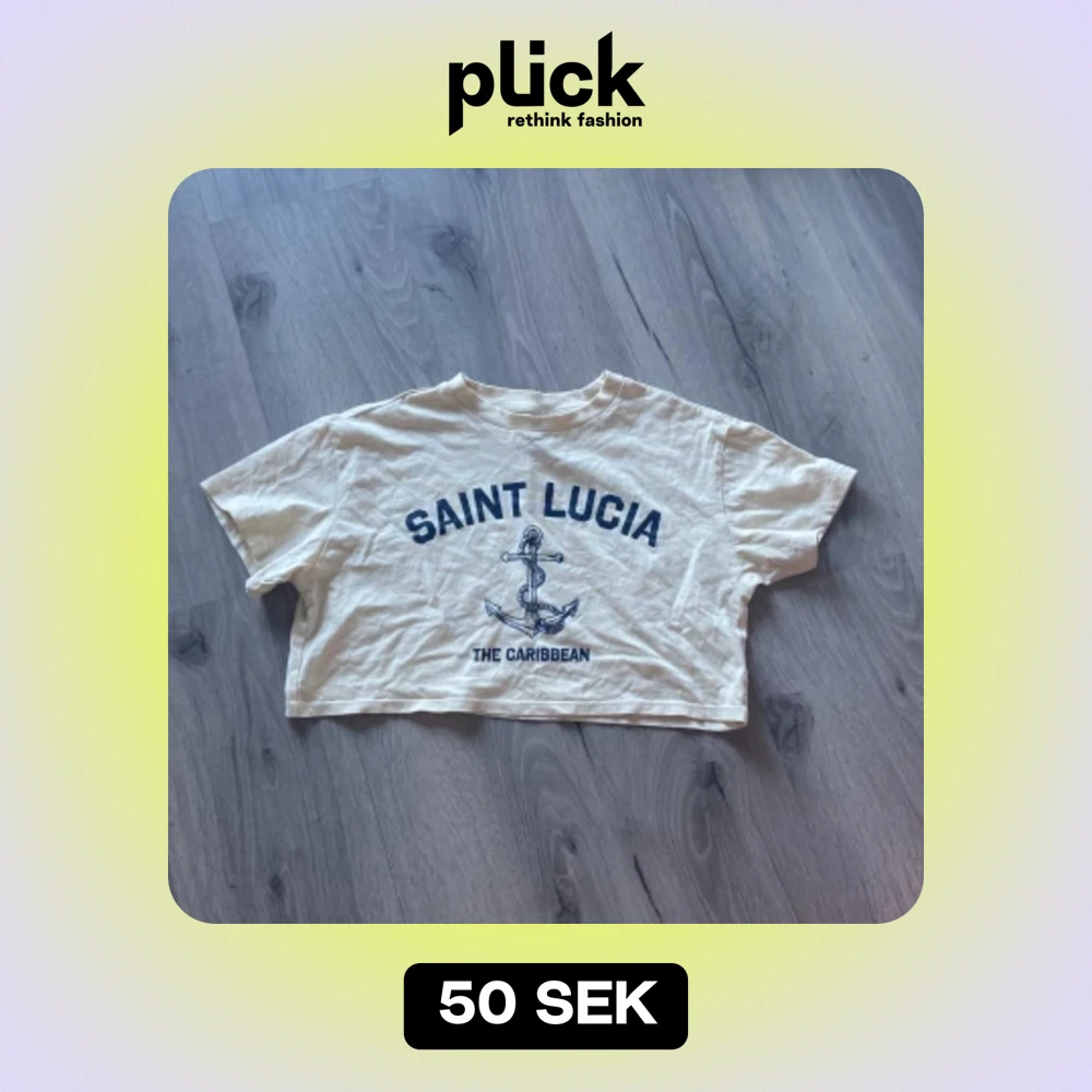 Croppad topp från hm. Den är i strl S och är sann i strl. Tshirt med tryck utan fläckar