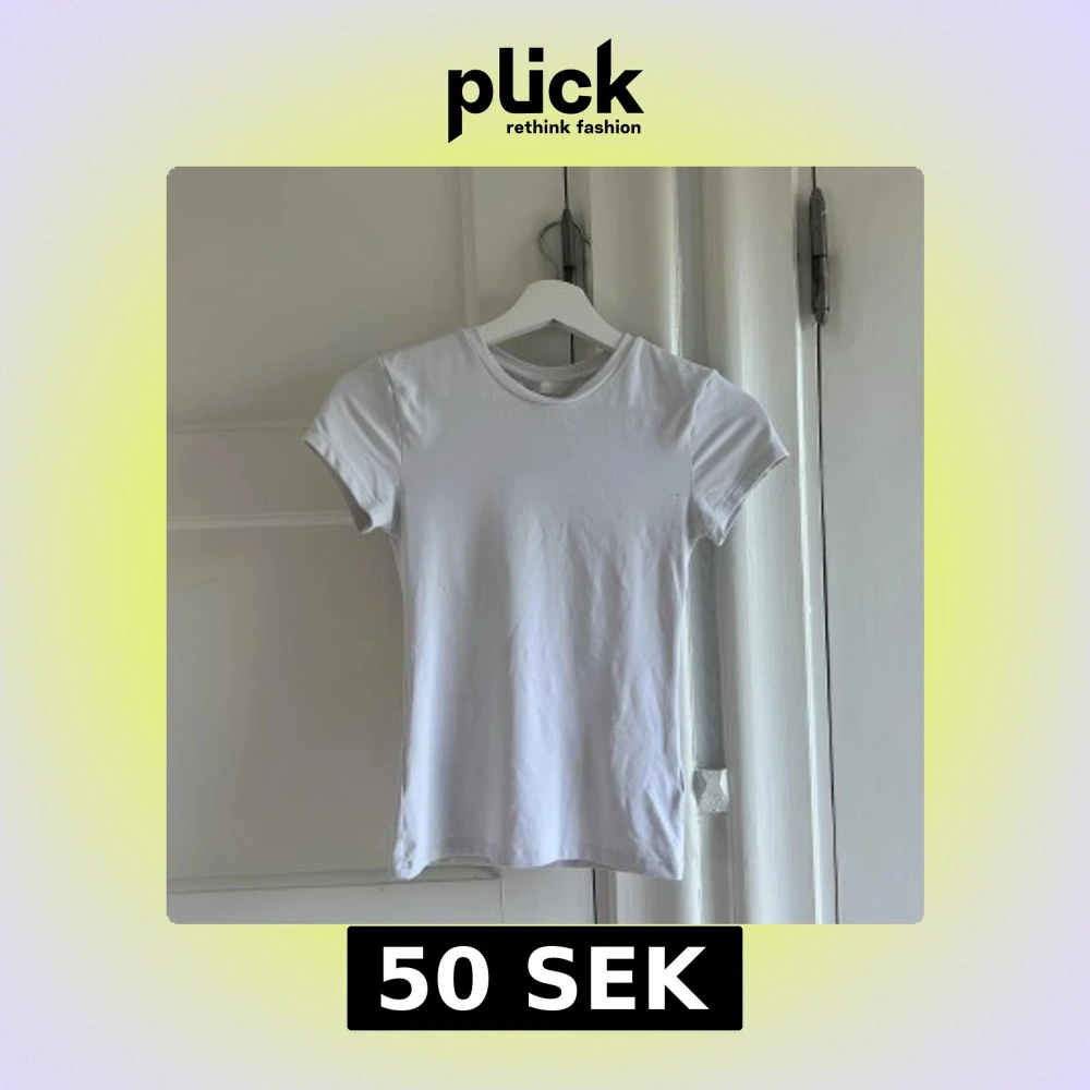 En vit tight T-shirt från HM i syntetiskt och strechigt material. Använd ett fåtal gånger men har tyvärr blivit ett litet hål vid väntar ärmen (sista bilden) då jag fastnat med en nagel, men hålet verkar inte bli större.