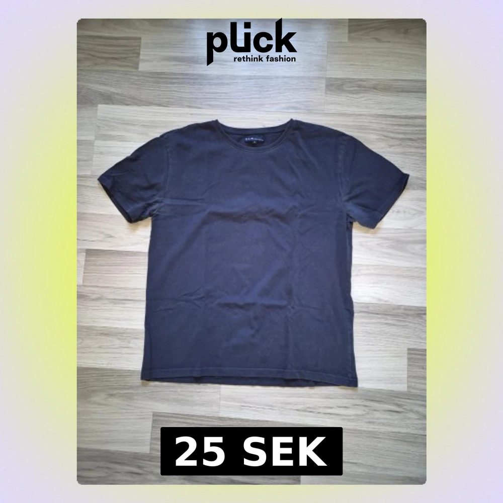 En enkel marinblå t-shirt från H&M i mjuk bomull. Klassisk rund halsringning och korta ärmar. Perfekt till jeans eller shorts för en clean och stilren look. Bilden som visar ryggen ser de ut att vara en fläck men de är linsen på kameran som har åstadkommit de.