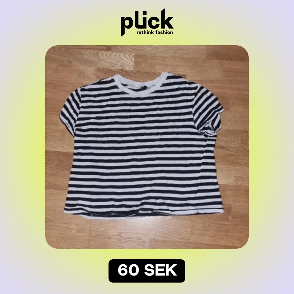 Storlek L randig tröja från h&m den är för liten för mig men inte cropad och bra på sommaren