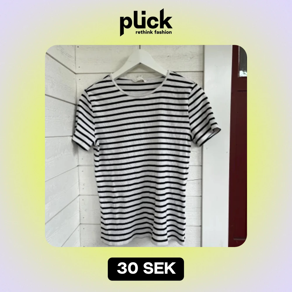 Säljer svartvit randig ribbad t-shirt i st Large i gott skick. Har används fåtal gånger. (Tvättas innan jag skickar)