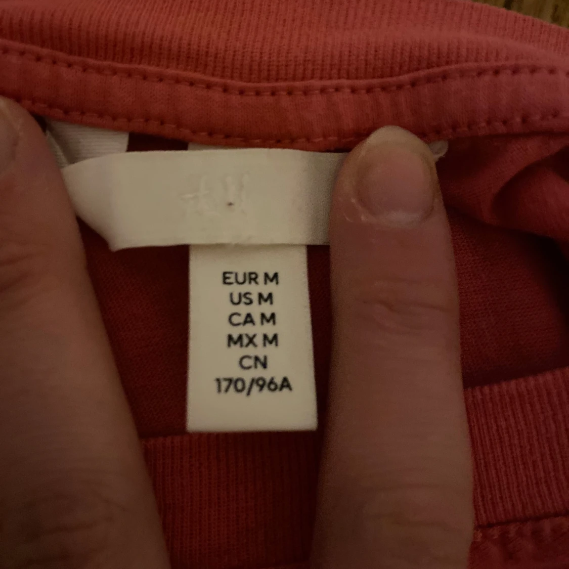 Säljer en enkel och stilren rosa/röd t-shirt från H&M. Den har en klassisk rund hals och korta ärmar, perfekt för en avslappnad look. Tillverkad i ett mjukt och bekvämt material.