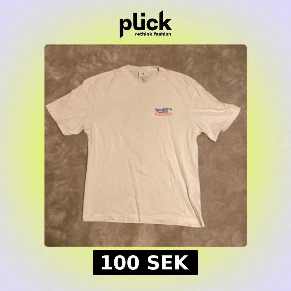 Vit t-shirt från H&M med relaxed fit. Svampmotiv i blått och orange på ryggen. Tillverkad i 100% bomull. Är öppen för ett lägre pris vid snabb affär. Om ni har några frågor skriv gärna!