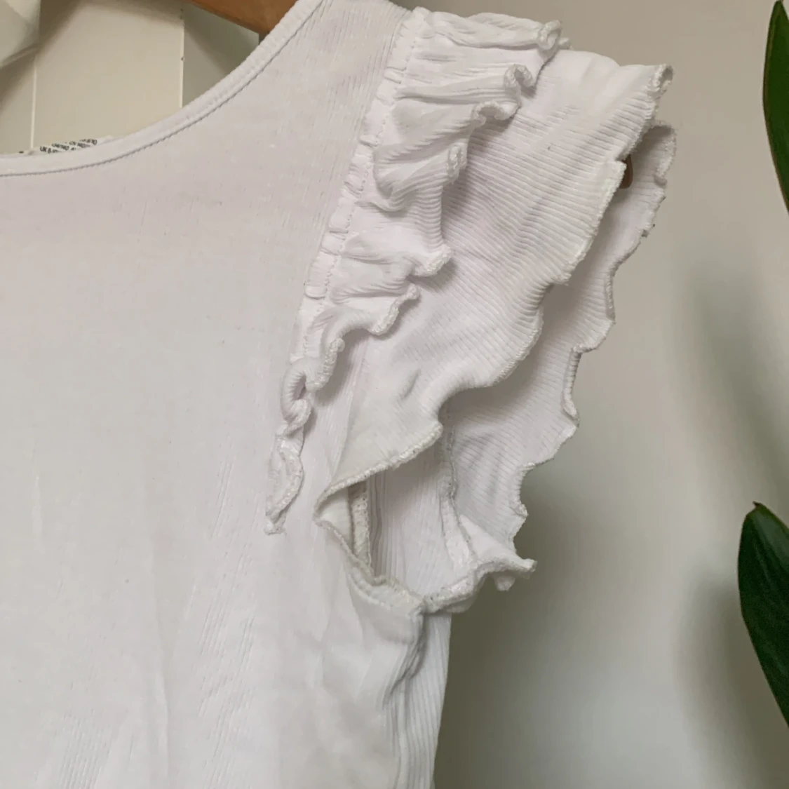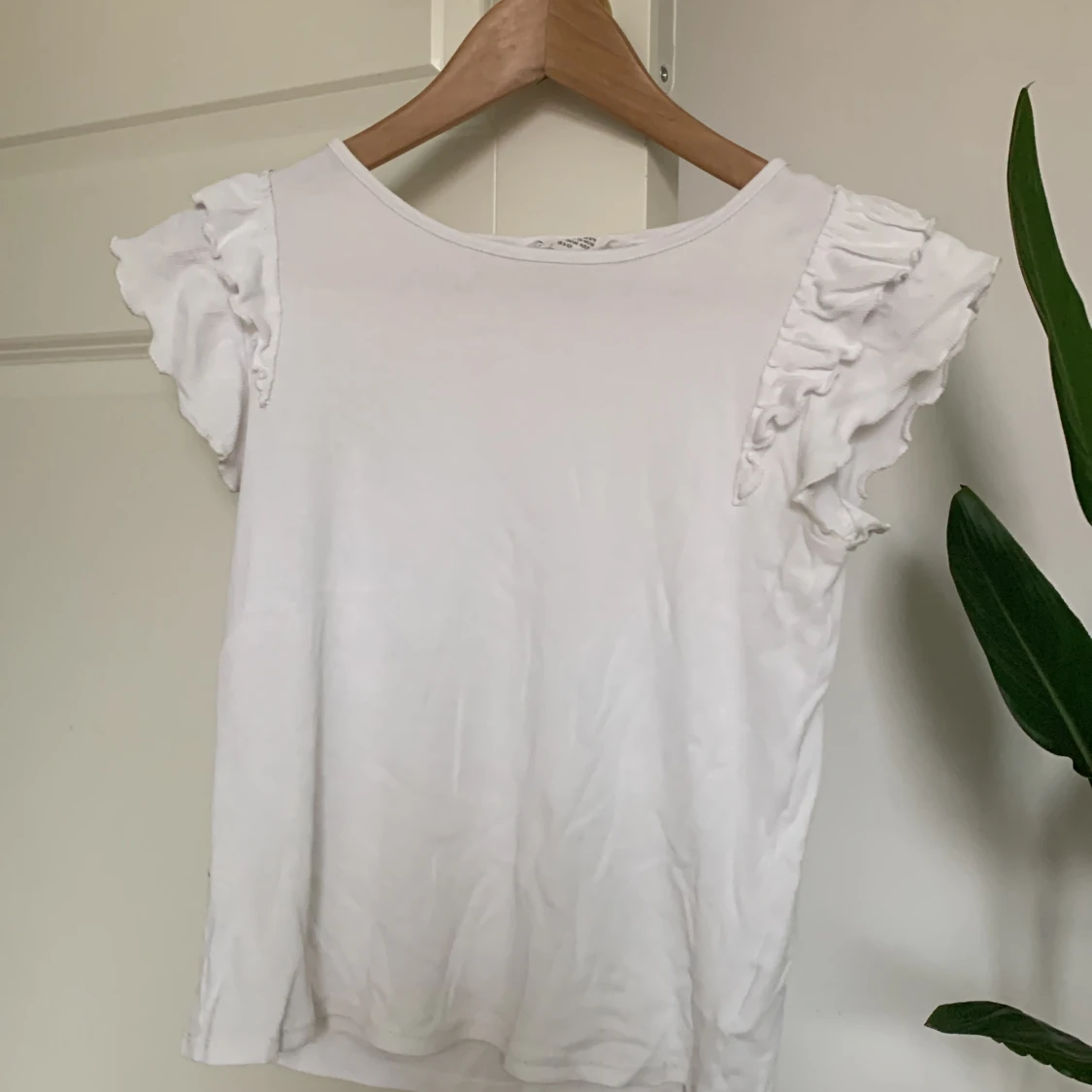 Säljer min vita tröja som är i bra sick🤍 Som har lite flammigt tyg i armarna🤍