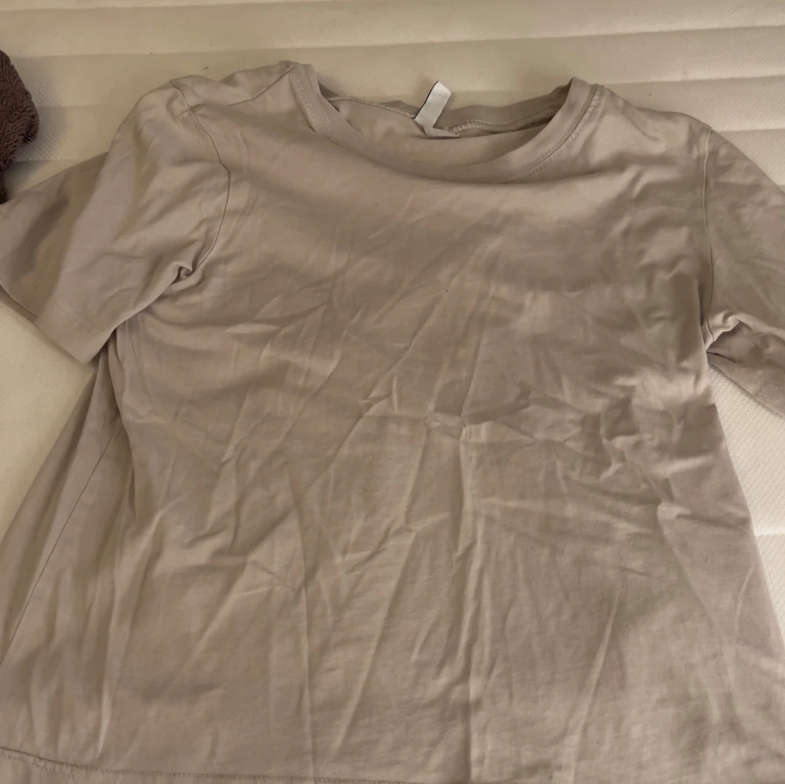 En enkel och stilren beige t-shirt med rund halsringning och korta ärmar. Perfekt för en avslappnad look.
