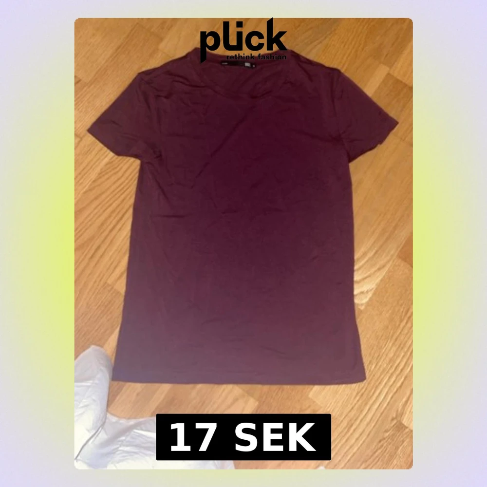En enkel och stilren vinröd t-shirt från H&M i mjuk bomull. Modellen har rund hals och korta ärmar, perfekt för dig som gillar en clean look. Passar dig som vill ha en basic tee med snygg färgton.