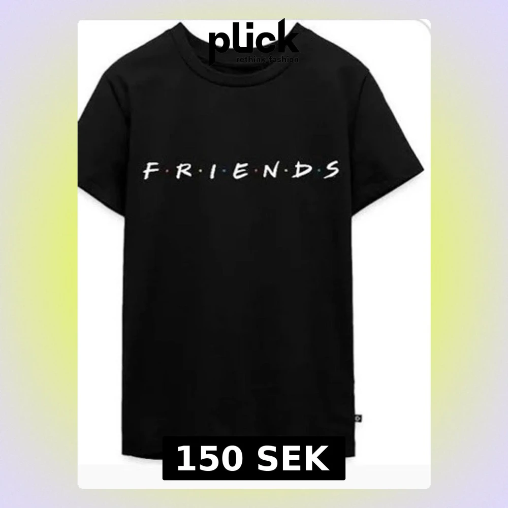 Svart t-shirt med FRIENDS-tryck framtill i vitt med färgglada prickar.