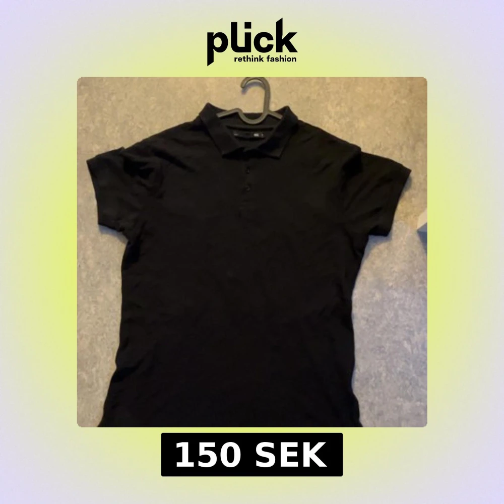 Svart piké t-shirt från H&M med klassisk krage och tre knappar framtill. Kortärmad modell i mjuk bomull, perfekt för en clean och stilren look. Passar dig som gillar enkel och tidlös stil.