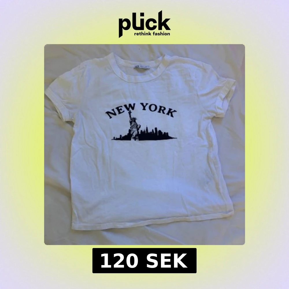 Vit t-shirt från Mango med svart New York-tryck och siluett av Frihetsgudinnan och stadens skyline. Klassisk rund hals och korta ärmar. Perfekt för dig som gillar streetstyle och vill ha en enkel men snygg look.