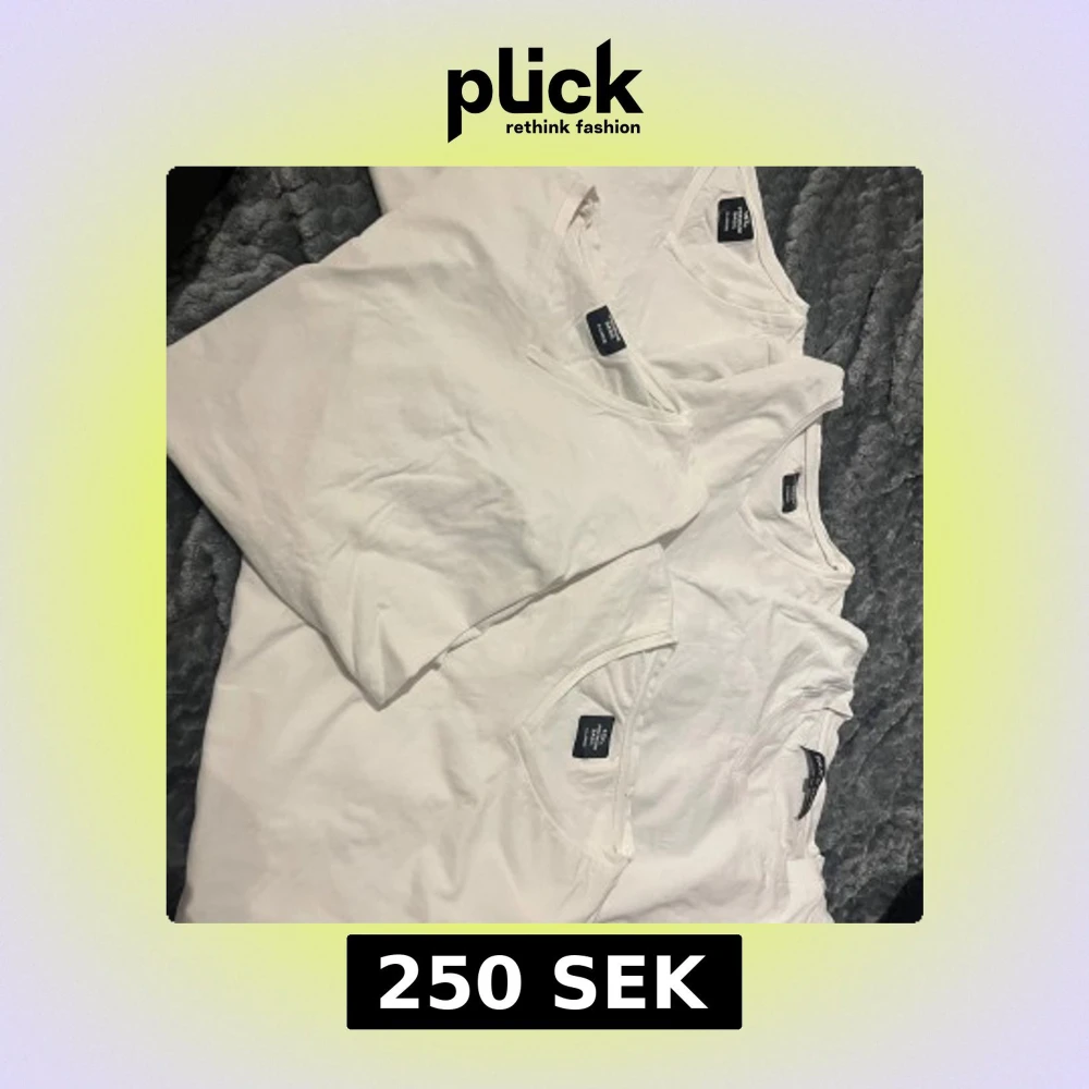 Säljer ett set av vita t-shirts från H&M. Perfekta för en enkel och stilren look. T-shirtsen har en klassisk passform och är gjorda i mjuk bomull och har en V ringning. Perfekta för vardagsbruk. Inte använda alls!