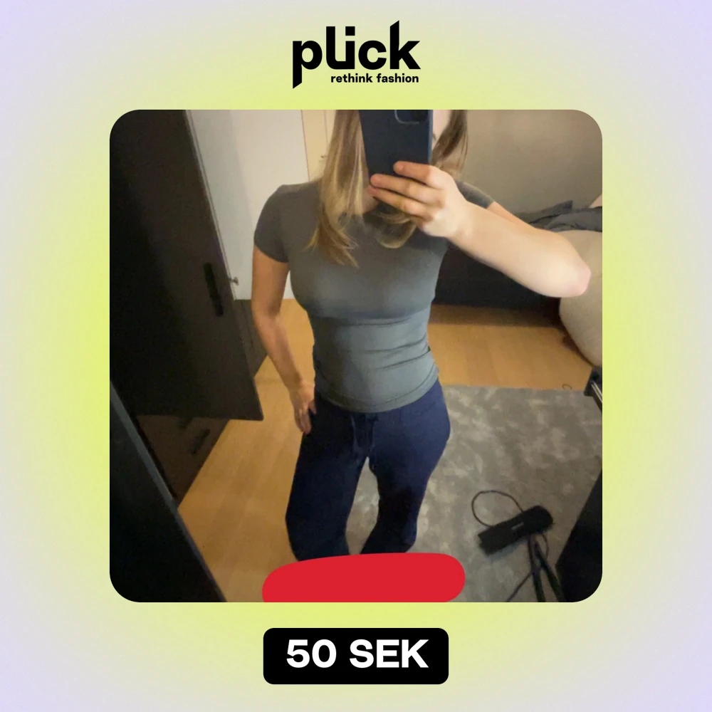 Figurnär tajt T-shirt ifrån h&m som ser precis ut som Skims. Finns ett liten defekt på sida 3, men den syns knappt då den är så pass liten🥰 Jättefin blågrå färg