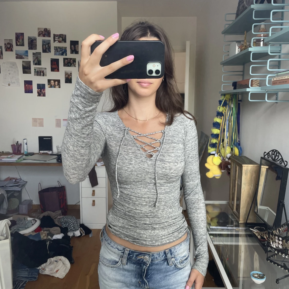 Grå långärmad från Hollister med snörning. Vid snabb affär kan pris diskuteras:))