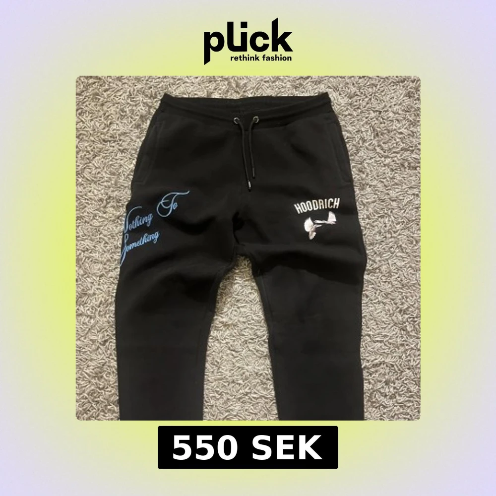 Skit fet set ifrån hoodrich, köpte för ca 1500 på jd sports. Både byxorna och tröjan är i storlek M. Säljer eftersom jag bytt stil, trycket på byxorna har försvunnit lite men är fof skit feta