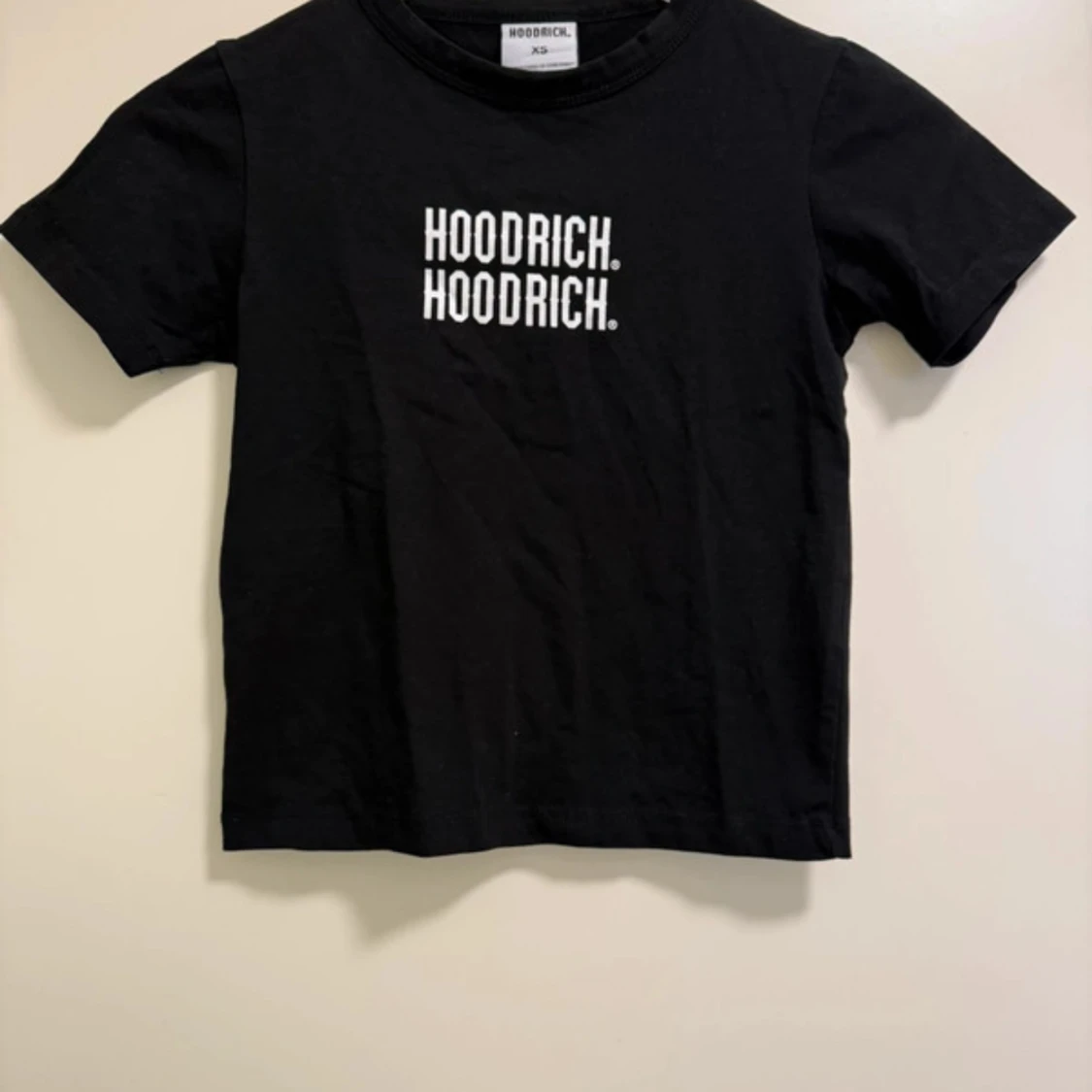 Svart t-shirt från Hoodrich med vit logga tryckt två gånger. Den är knappast använd och i nyskick. Säljer den då jag inte fått någon användning för den.