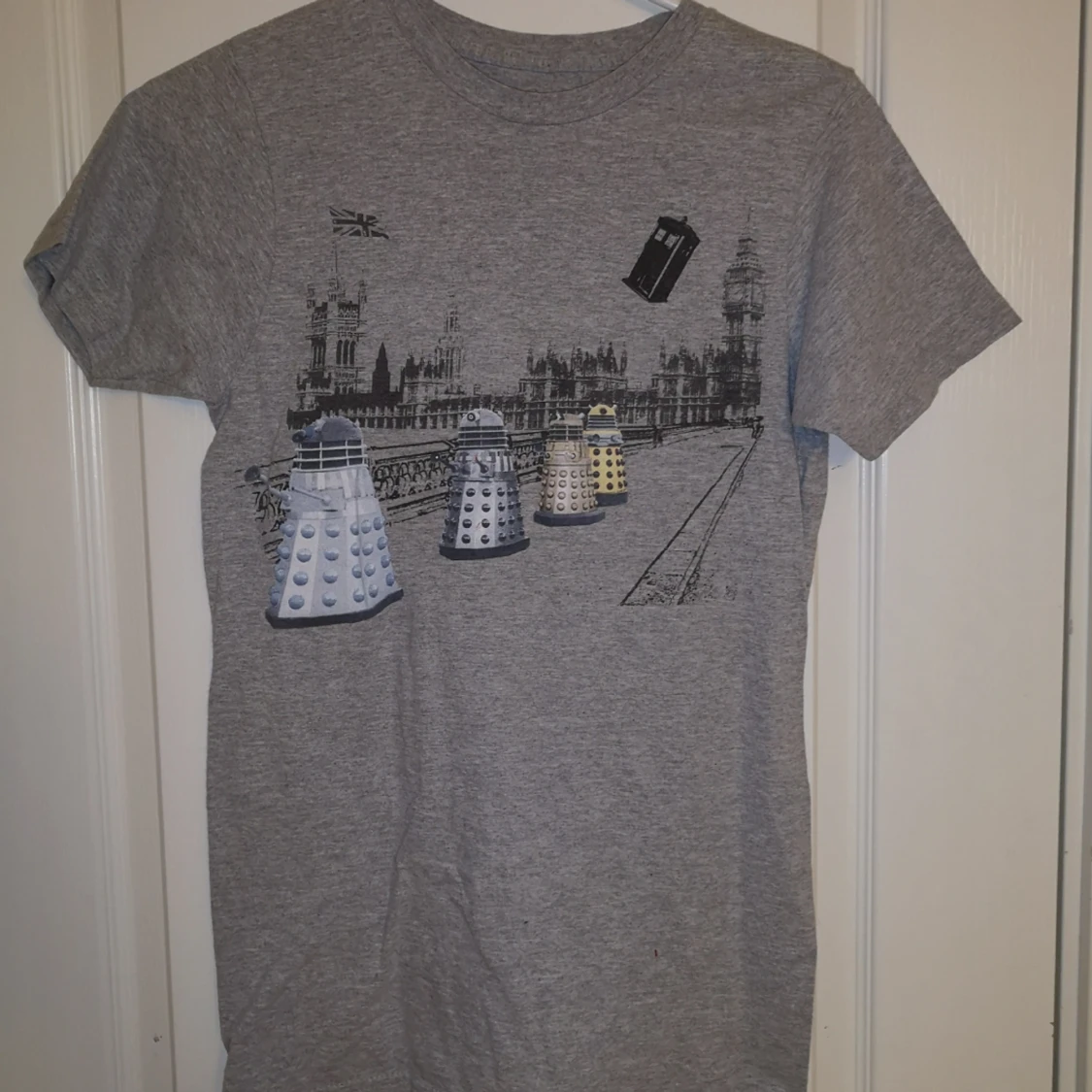En grå t-shirt med bild från Doctor Who. Tycker mycket om den men kommer sällan till användning. Köptes på Hot Topic för 2-3 år sen. Kan hämtas i Lund eller Eslöv, annars tillkommer frakt.
