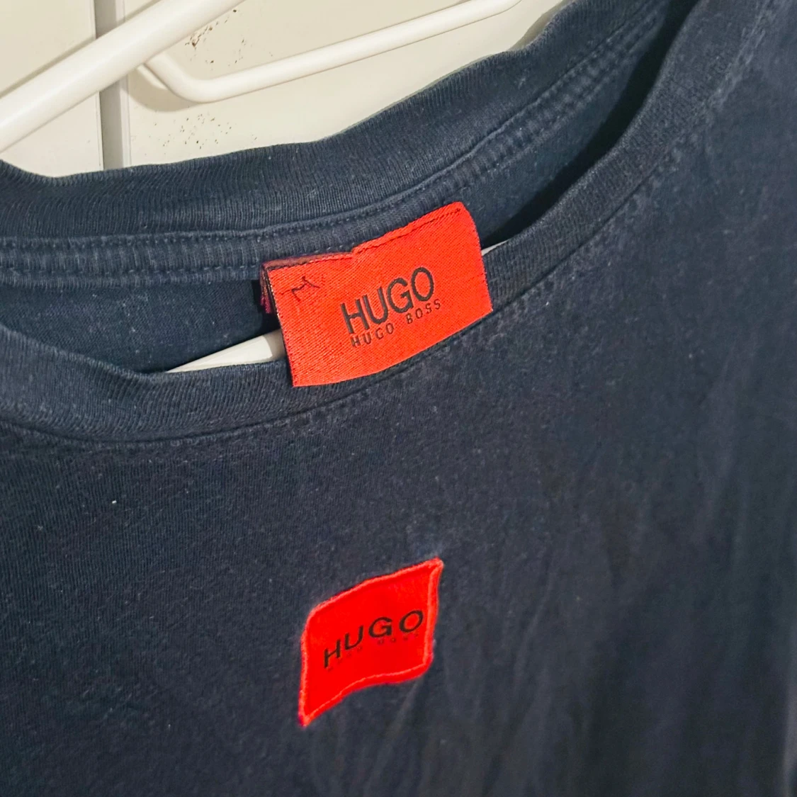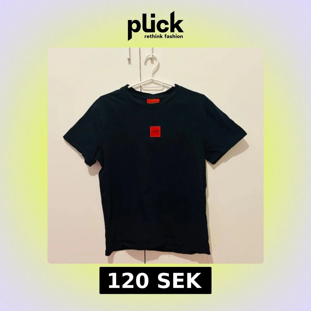 Säljer en svart t-shirt från Hugo Boss med röd Hugo-logga på bröstet. Klassisk passform och rund halsringning. Perfekt för dig som gillar stilrena plagg med en touch av designer.