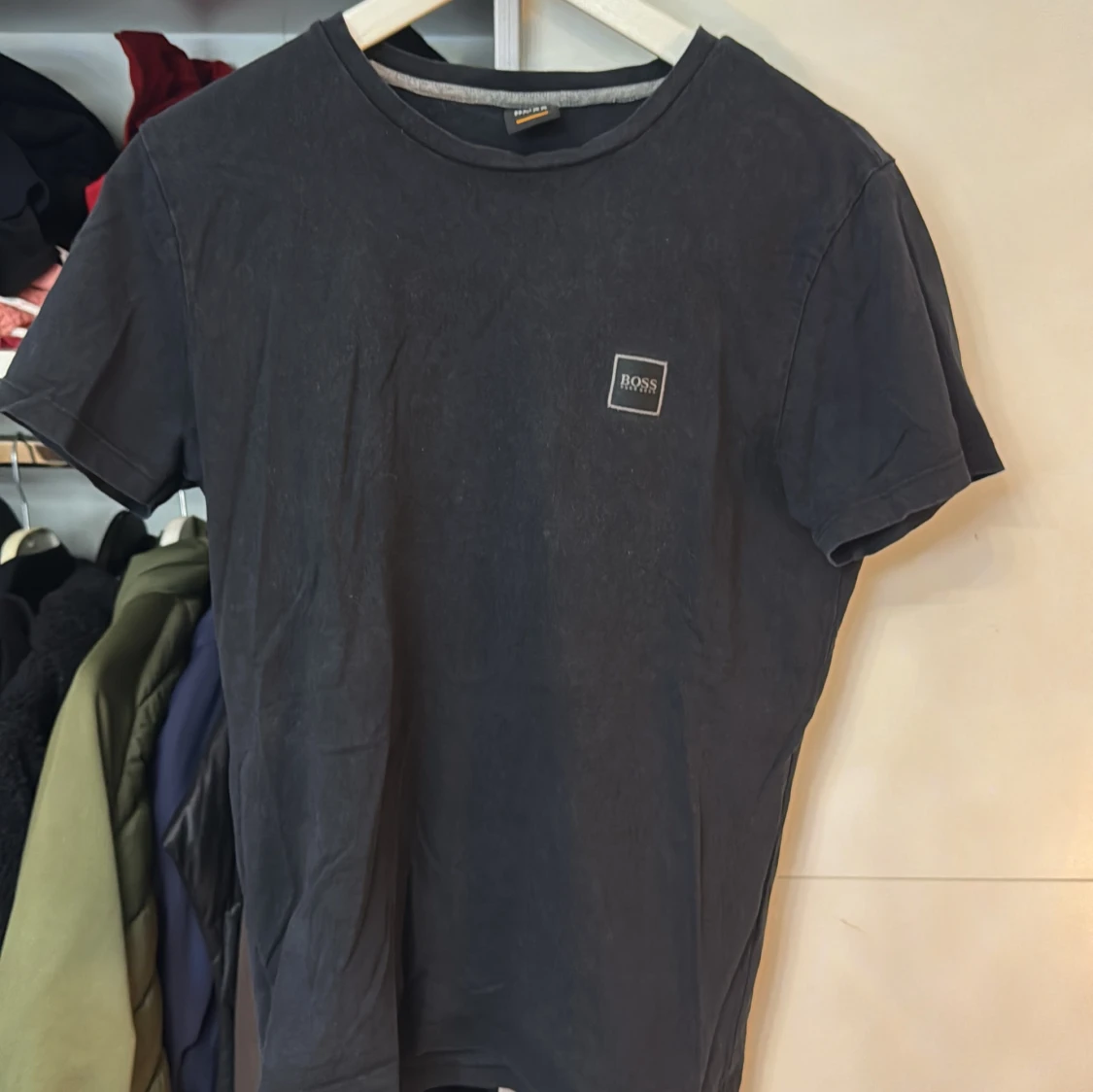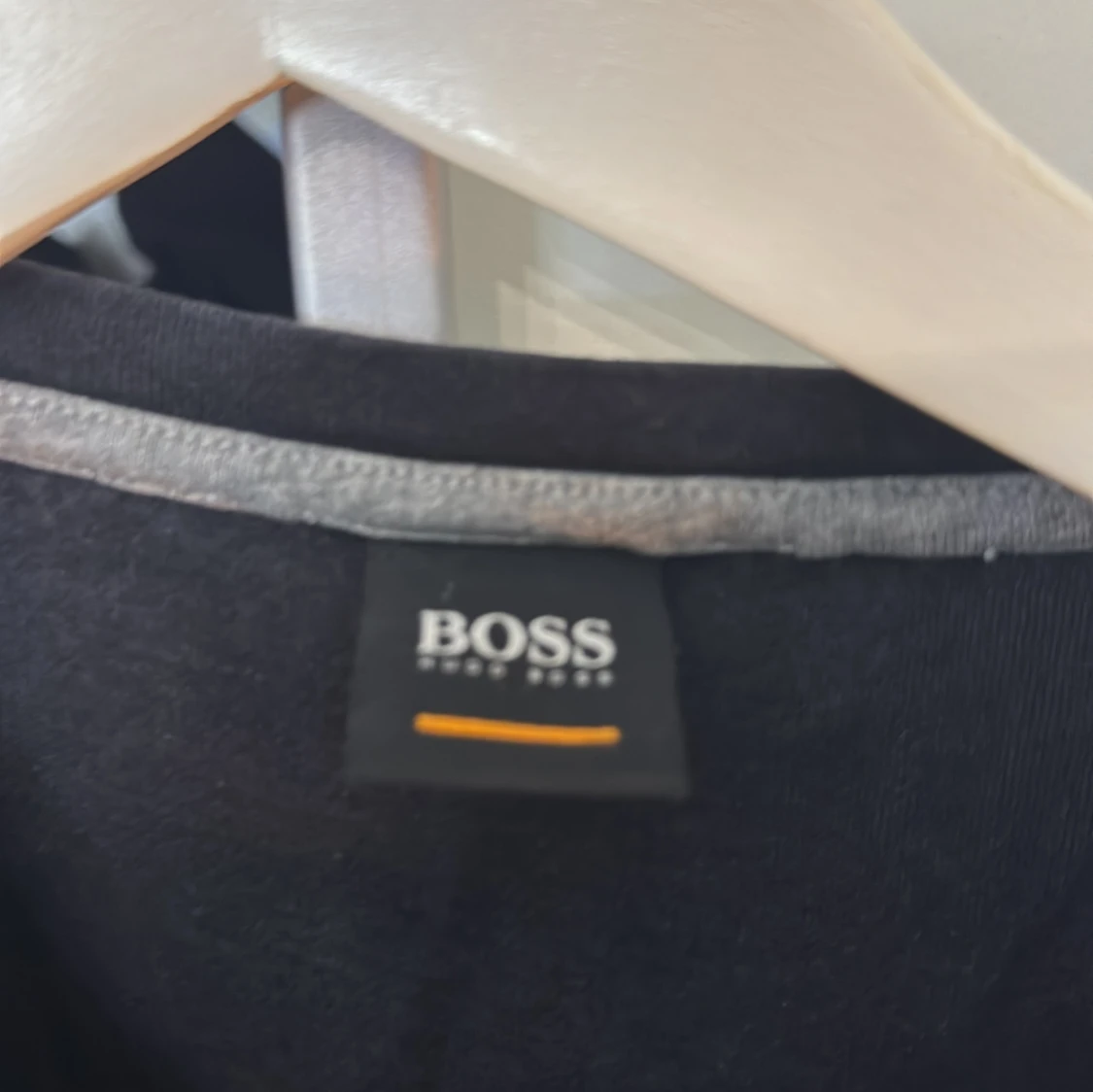Snygg svart t-shirt från Boss med en liten logotyp på bröstet. Perfekt för en stilren och avslappnad look. Storlek S men passar även XS