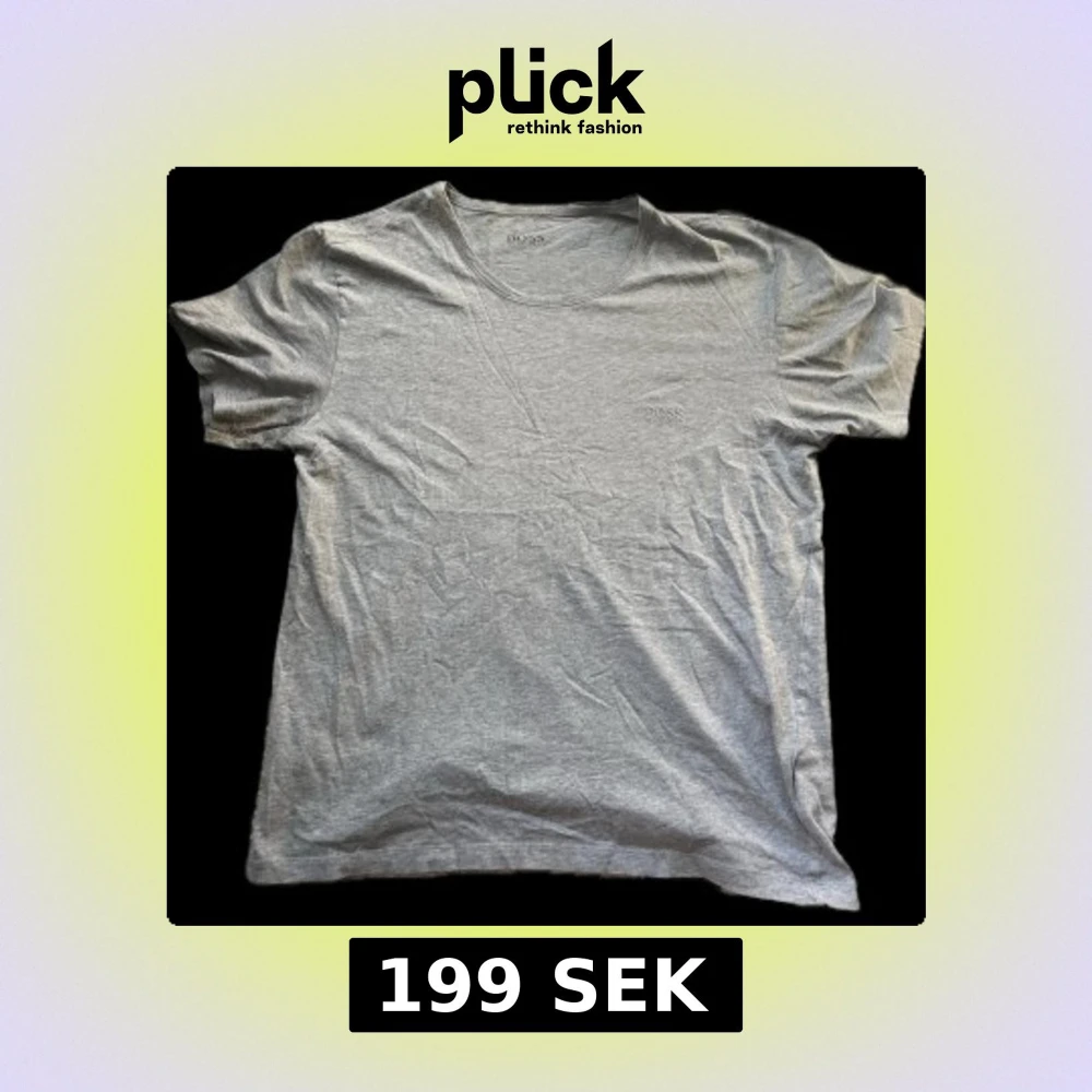 Säljer en stilren grå t-shirt från Hugo Boss. Den har en diskret broderad logga på bröstet och är tillverkad i mjuk bomull. Perfekt för en avslappnad look.