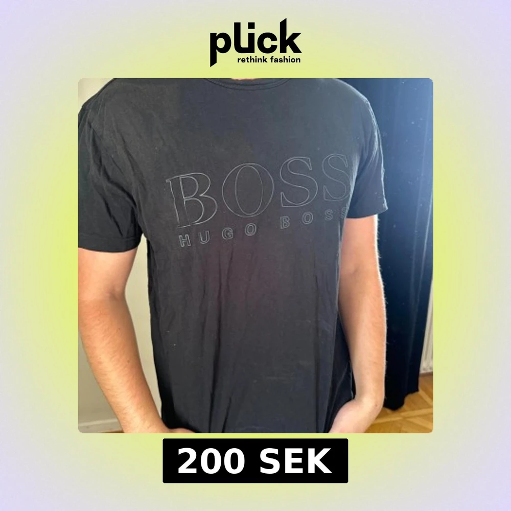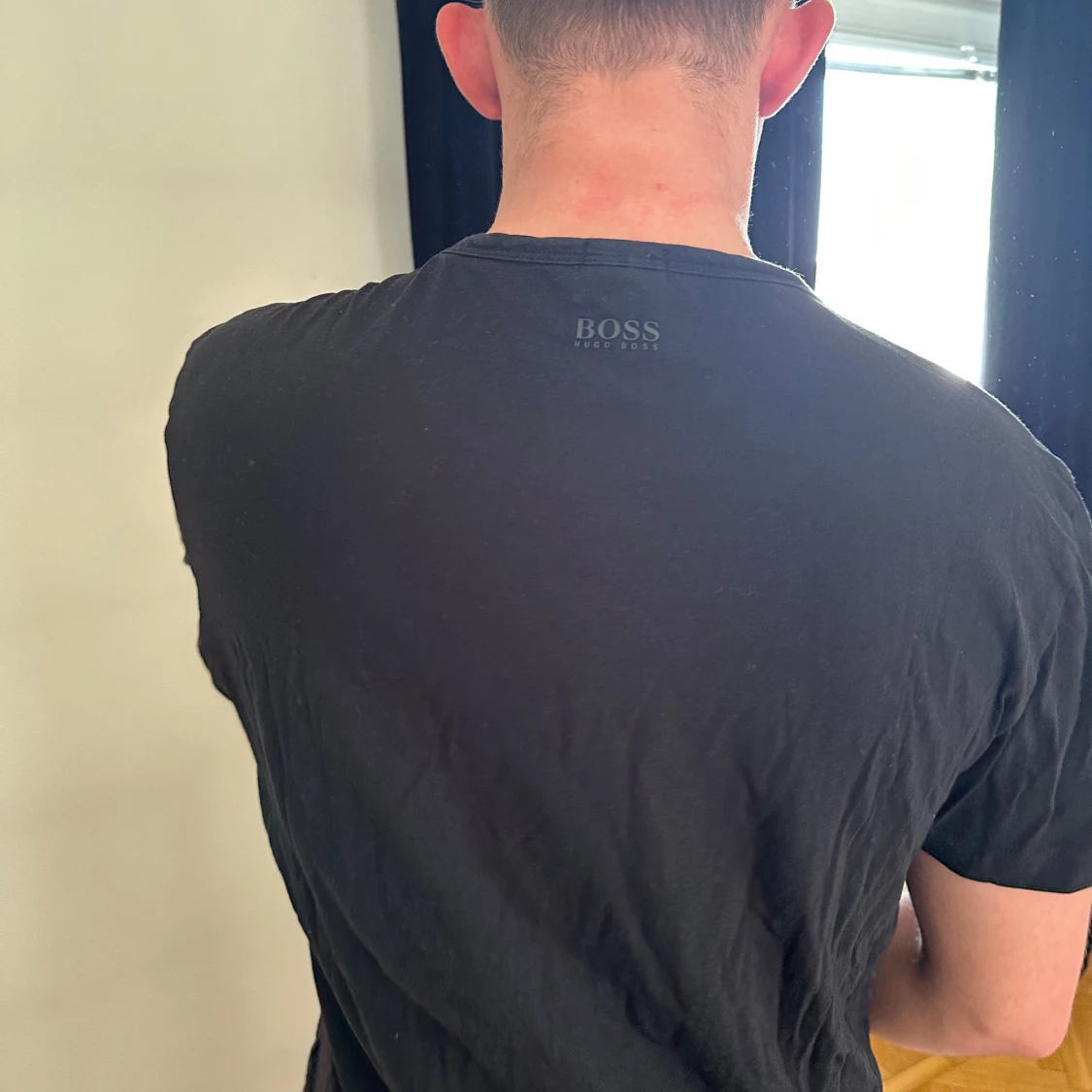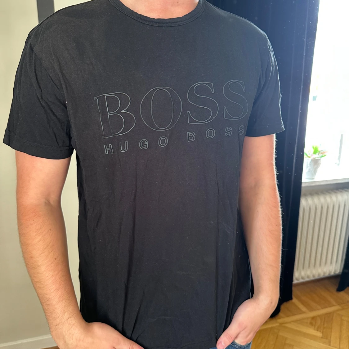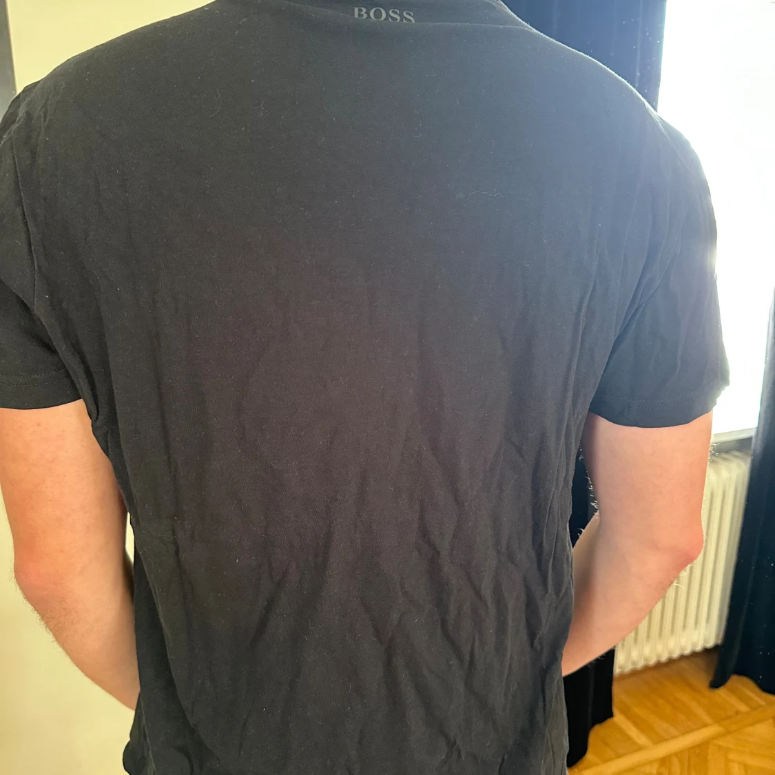 Svart t-shirt från Hugo Boss med stor, diskret logga framtill och mindre logga i nacken. Klassisk rund hals och korta ärmar. Tillverkad i mjuk bomull för en skön känsla och snygg passform.