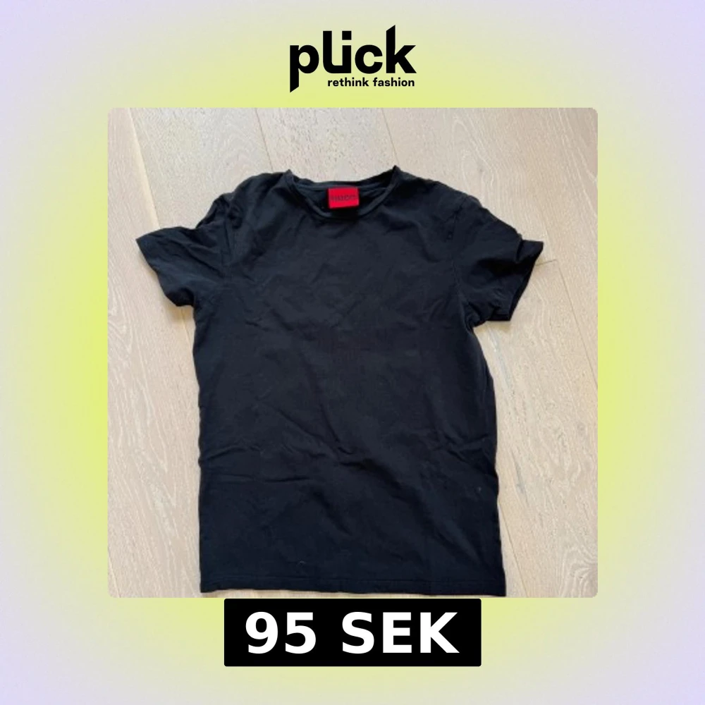 En clean svart t-shirt från Hugo i klassisk modell med rund hals och korta ärmar. T-shirten är i mjuk bomull och har en diskret logga i nacken. Perfekt basplagg för en stilren look.