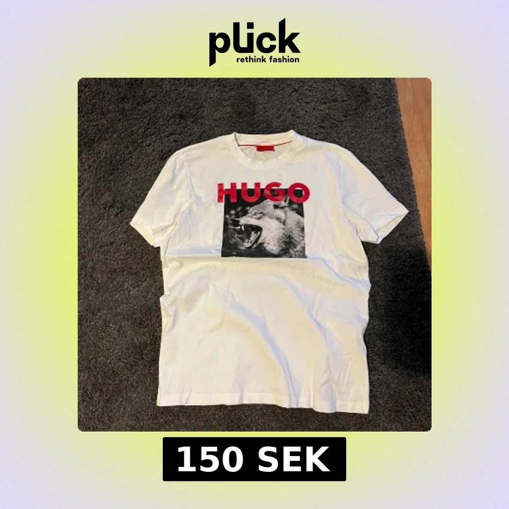 Snygg vit t-shirt från Hugo med ett coolt vargmotiv och röd text på bröstet. Perfekt för en avslappnad stil med en touch av attityd. Kortärmad och i mjukt material.