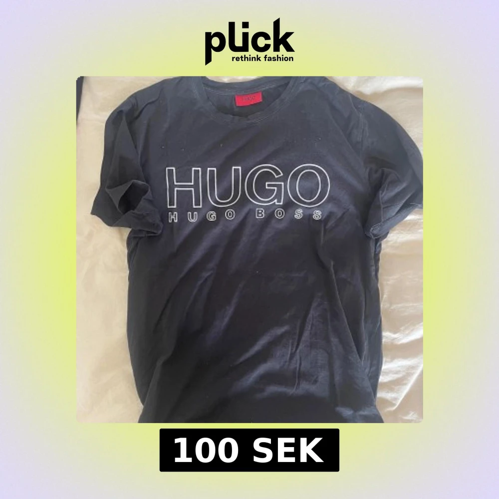 Hugo Boss T-Shirt svart med silvertext i storlek M.