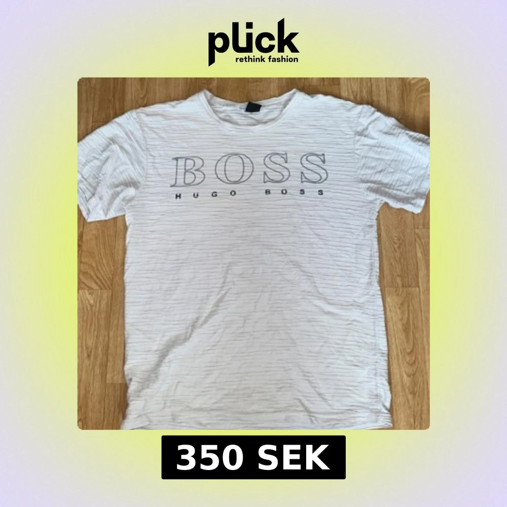 Vit t-shirt från Hugo Boss med stor BOSS-logga framtill. T-shirten har korta ärmar och rund halsringning. Materialet är bomull och har en lätt strukturerad yta som ger en cool känsla. Perfekt för en clean och stilren look.