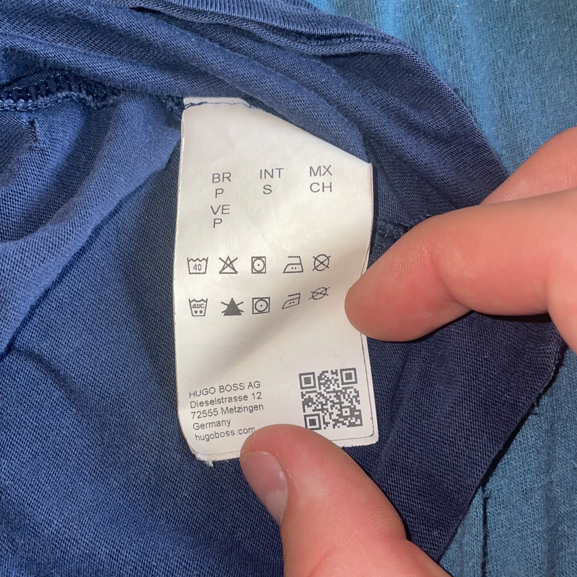 Marin/mörkblå t-shirt från hugo boss, har ett litet hål (se bild 3)