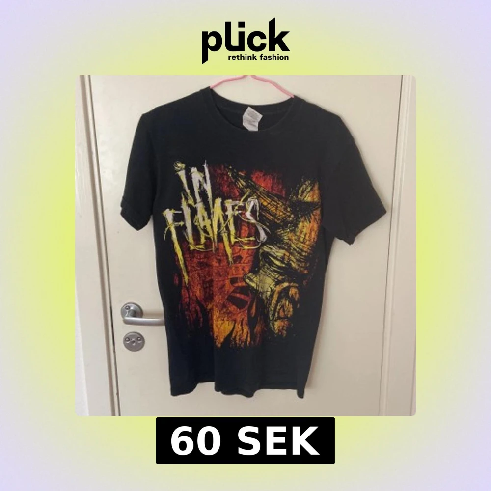 Svart band t-shirt från Gildan med fet In Flames-tryck fram och turnédatum på ryggen. Grym design i rött, gult och orange med coolt motiv och text. Gjord i 100% bomull, klassisk passform och korta ärmar. Perfekt för dig som älskar metal och vill sticka ut.