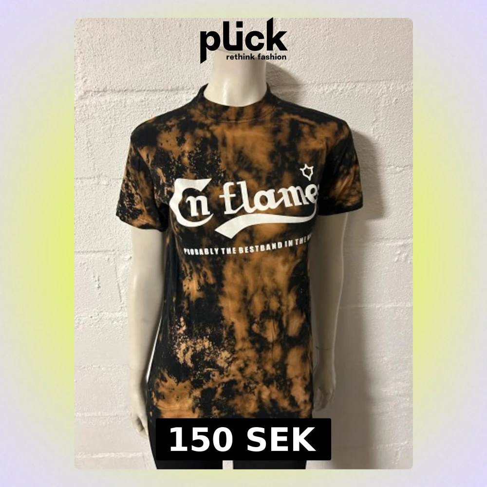 Helt ny T-shirt In flames. Storlek XS. Med infärgade melerade blekningar.