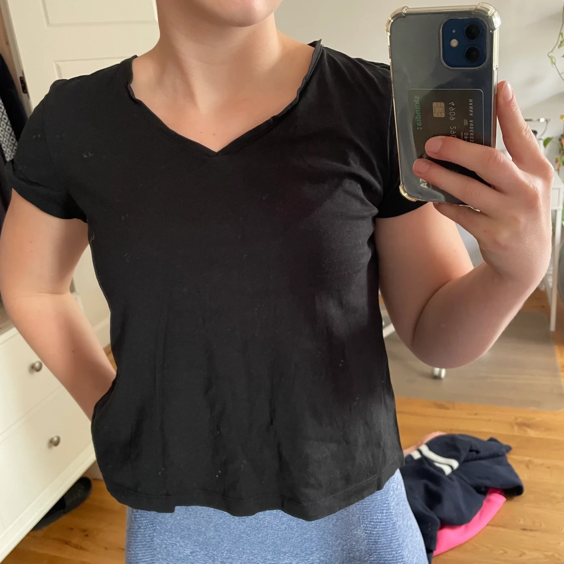 Svart basic v-ringad t-shirt från Indiska! Bra skick, passar allt från xxs-m(: Pris kan diskuteras vid snabb affär, frakt betalas av köparen. Skriv gärna om ni har frågor eller vill ha fler bilder!💕