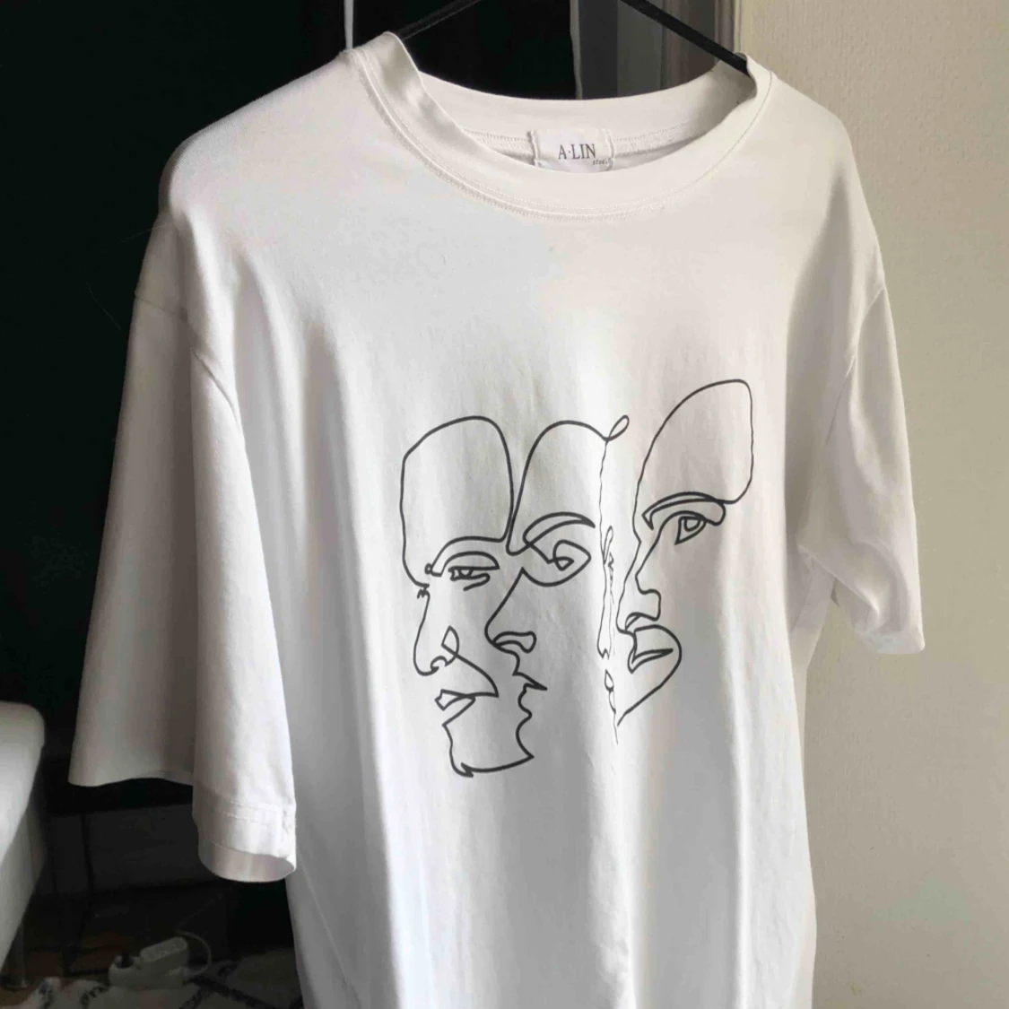 Super skönt vit T-shirt med ansiktsdetaljer! Knappt använd! Som ny! Passar både S och M! Köpt för: 700kr Mitt pris: 300kr #ansikten