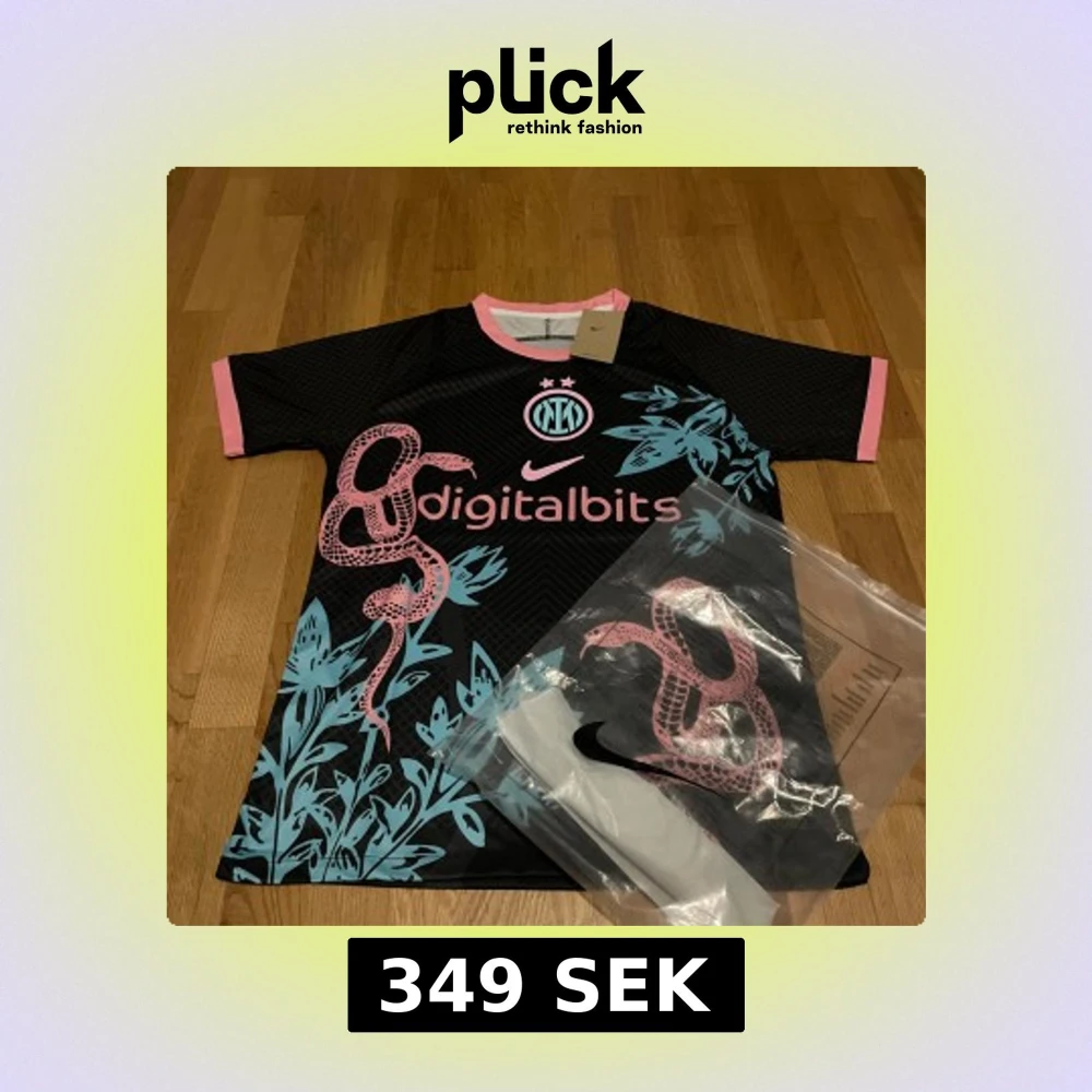 Inter Milan Dri-Fit fotbollströja från Nike med svart bas, rosa detaljer och blått tryck. Coolt ormmotiv och bladmönster på framsidan, samt Digitalbits-logga. Kortärmad med rosa krage och ärmslut. Tillverkad i lätt, ventilerande polyester.