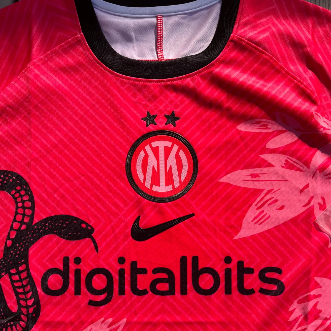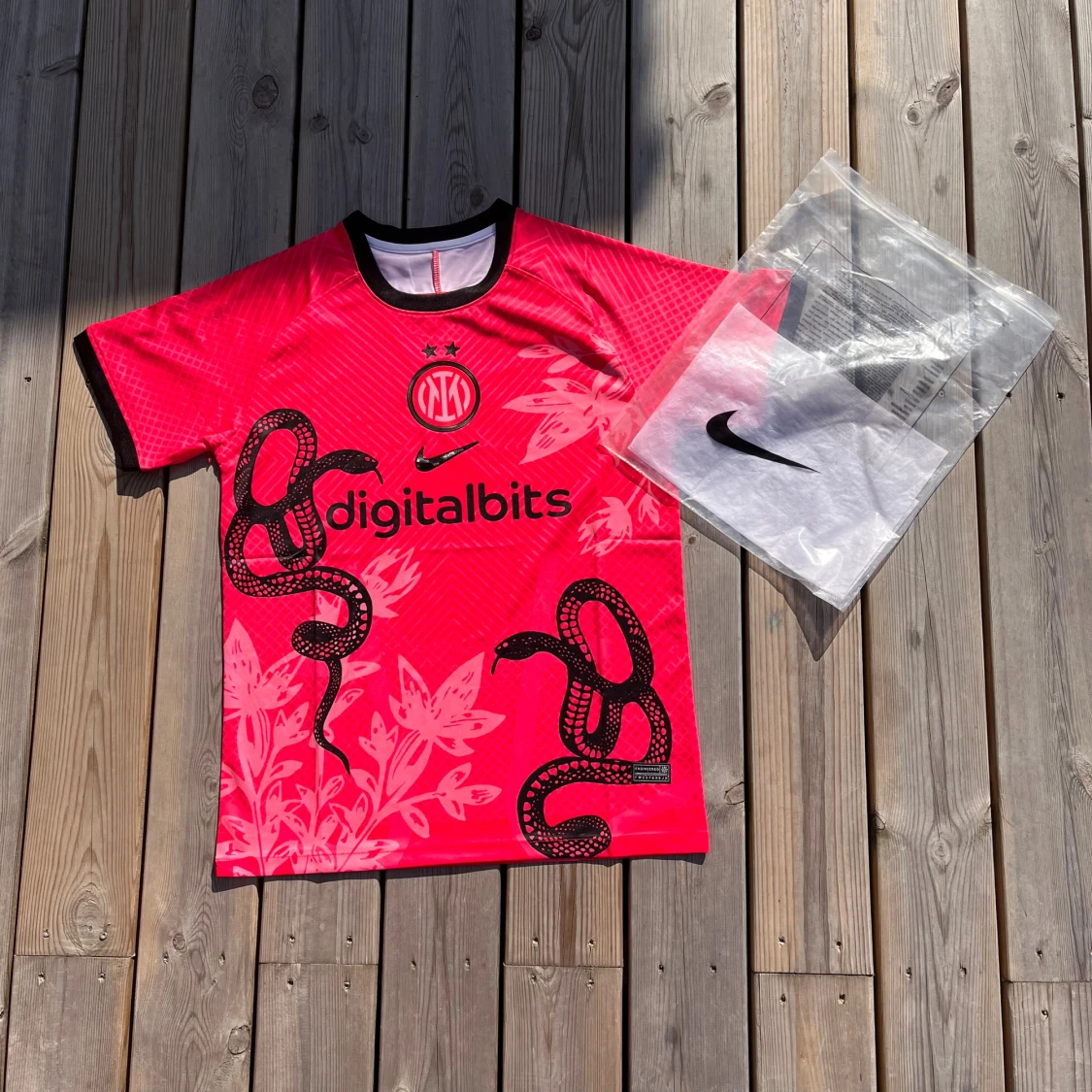 Säljer en riktigt snygg Inter Milan fotbollströja som är i helt nytt skick med etikett, förpackning och är helt oanvänd. Den är i storlek S och är i färgen röd/rosa med svarta detaljer. Pris:349kr men priset är inte hugget i sten.