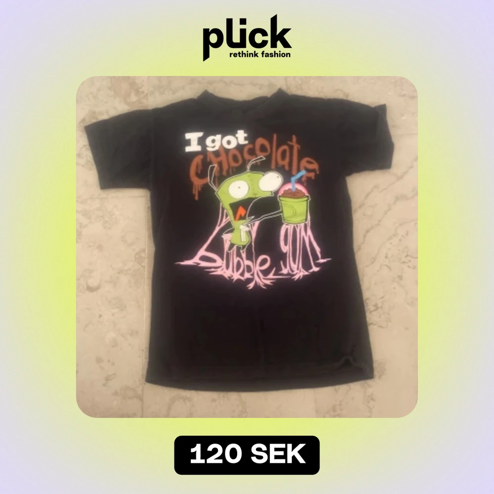 invader zim t-shirt med gir tryck på! jättefint skick, köpt second hand men säljer då jag inte sett serien. 100% bomull väldigt scene kid emo yaaaa XD pris går såklart att diskutera <3