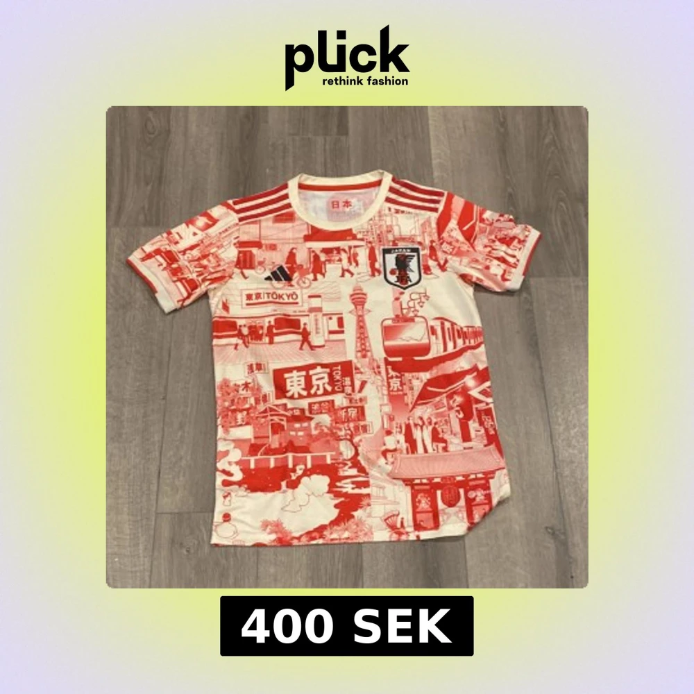 Unik Japan fotbollströja från Adidas med Tokyo-inspirerat rött och vitt mönster över hela tröjan. Klassiska tre ränder på axlarna, Japan-märke på bröstet och coola japanska motiv. Tillverkad i lätt och ventilerande material, perfekt för match eller träning.