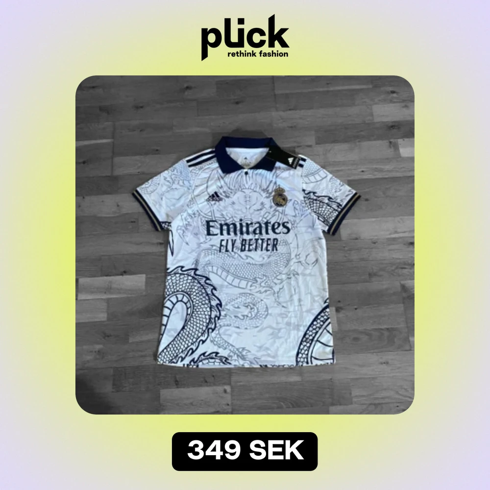 Säljer denna sällsynta real Madrid jerseyn med drakmotiv! Helt ny! Storlek S herr! Vid frågor och eller funderingar tveka inte på att hör av dig!🔥🤩