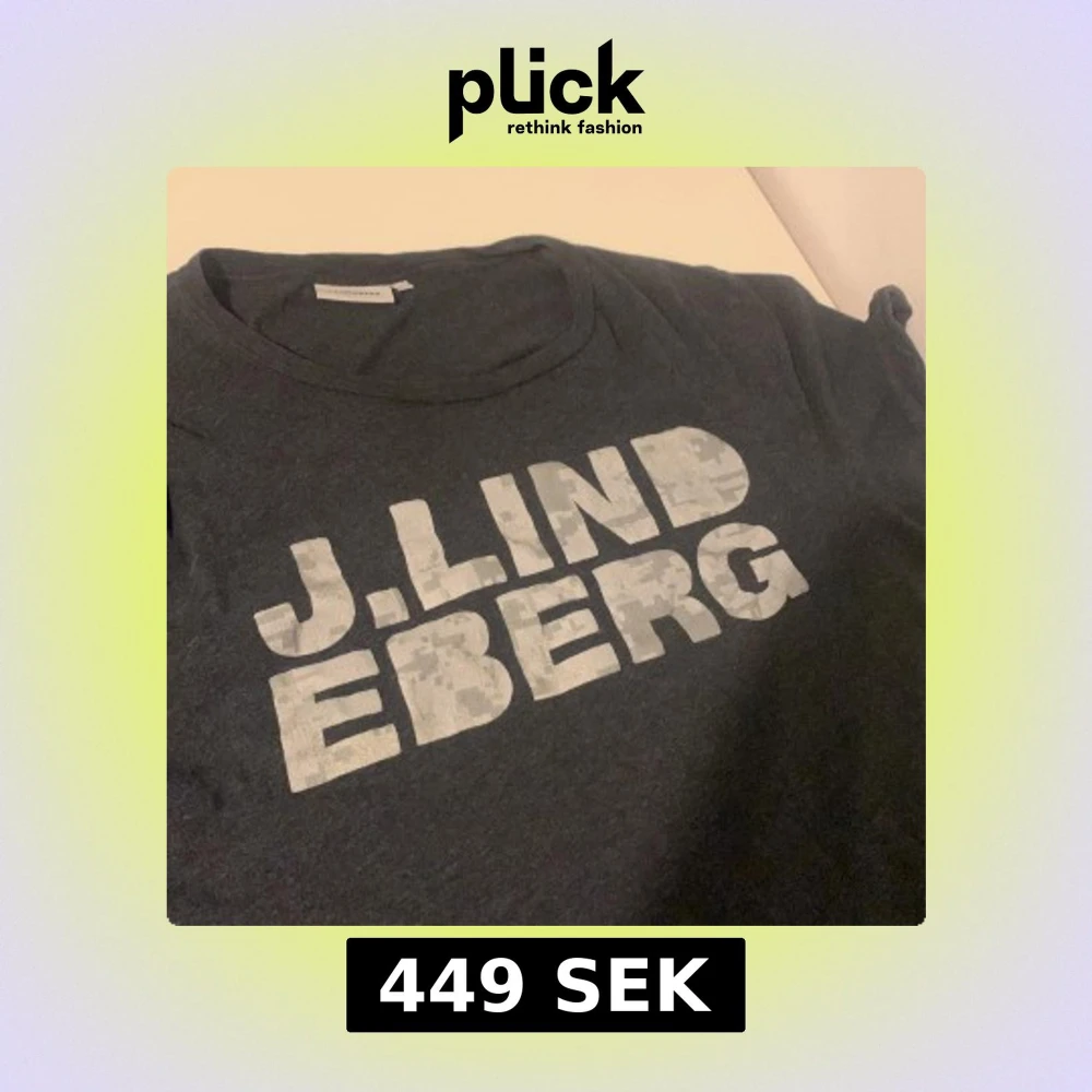 Säljer en mörkgrå t-shirt från J.Lindeberg med stort tryck på framsidan. T-shirten är kortärmad och har en klassisk rund halsringning. Perfekt för en avslappnad stil.