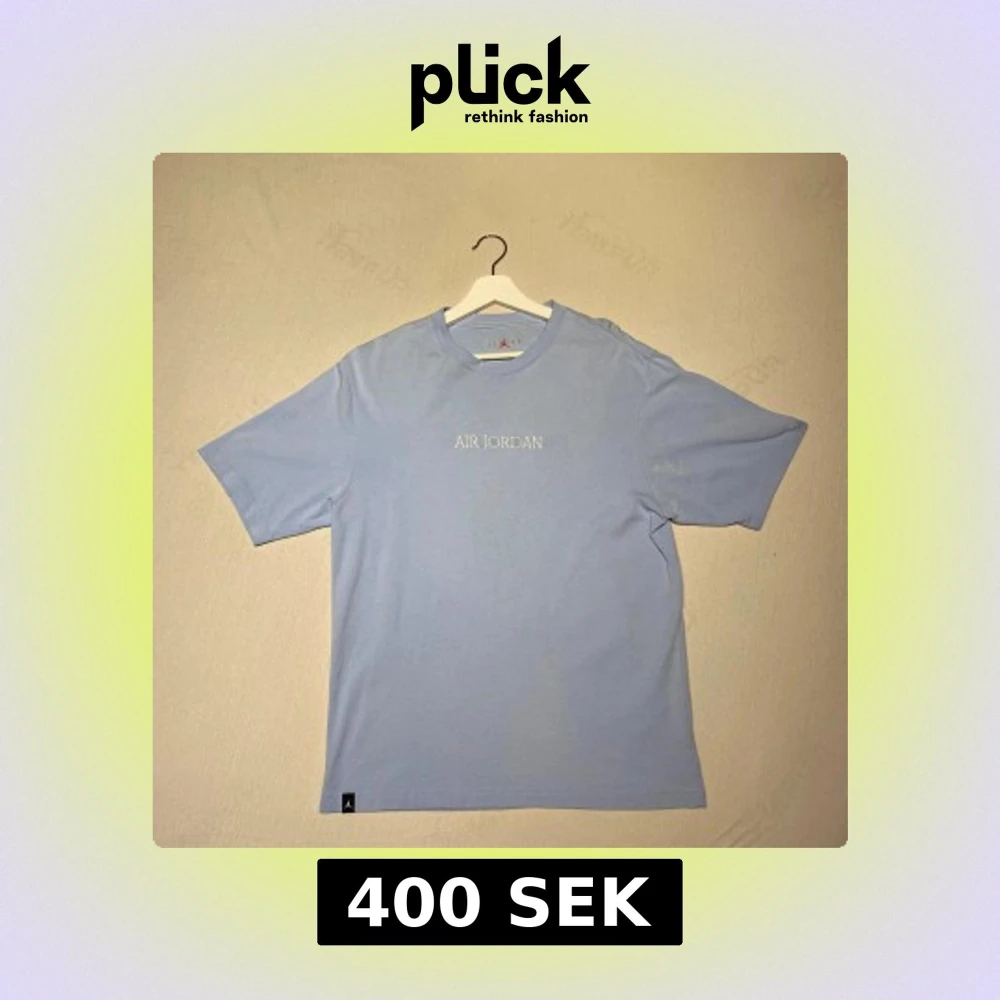 Ljus blå Jordan T-shirt i mycket bra skick. Den är perfekt för sommar och har inga defekter. Den är storlek S men har lite baggy fit, så den kan passa som storlek M också.