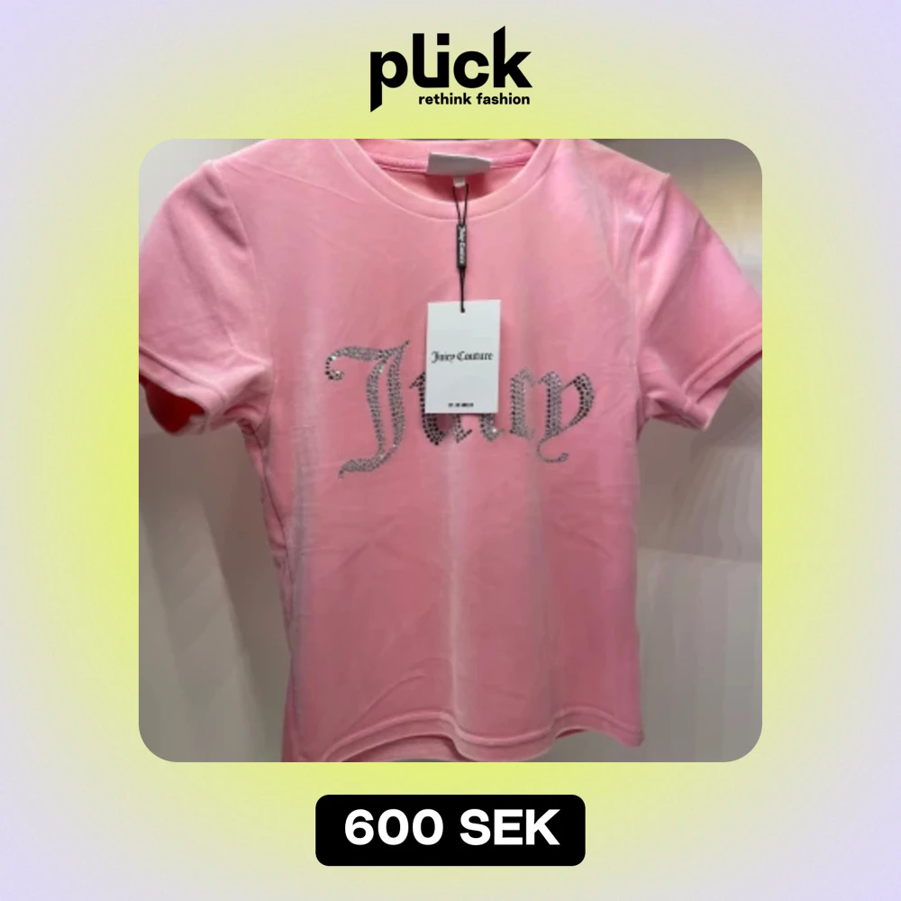 Säljer en superfin rosa t-shirt i velour från Juicy Couture. Den har ett glittrigt 'Juicy'-tryck på framsidan. Kortärmad och i storlek M. Helt ny med prislapp kvar.