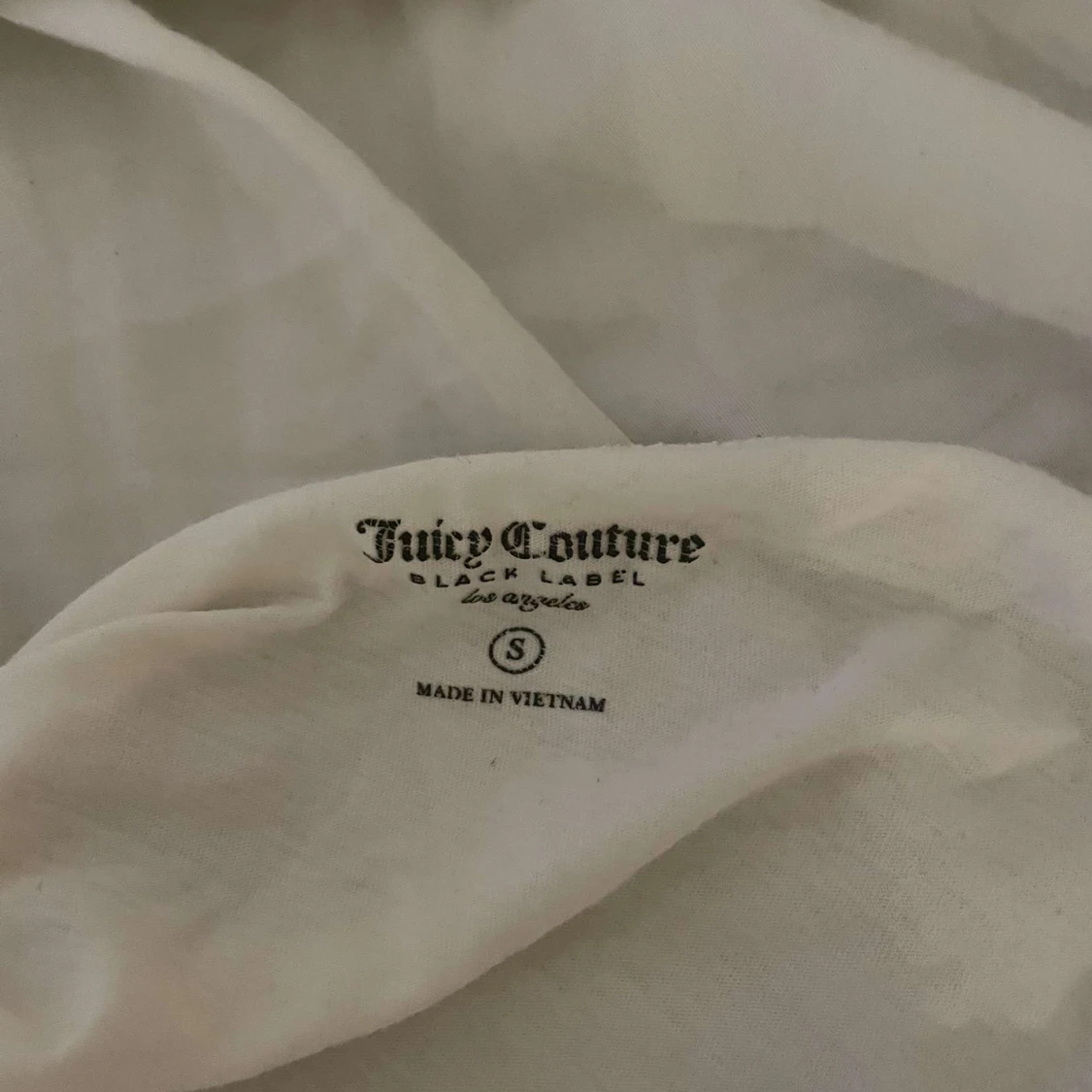 Vit t-shirt från Juicy Couture Black Label med ett glittrigt tryck framtill. Klassisk rund halsringning och korta ärmar. T-shirten är i mjuk bomull och har en slim passform som sitter snyggt på kroppen. Perfekt för dig som gillar en clean men ändå glam vibe.
