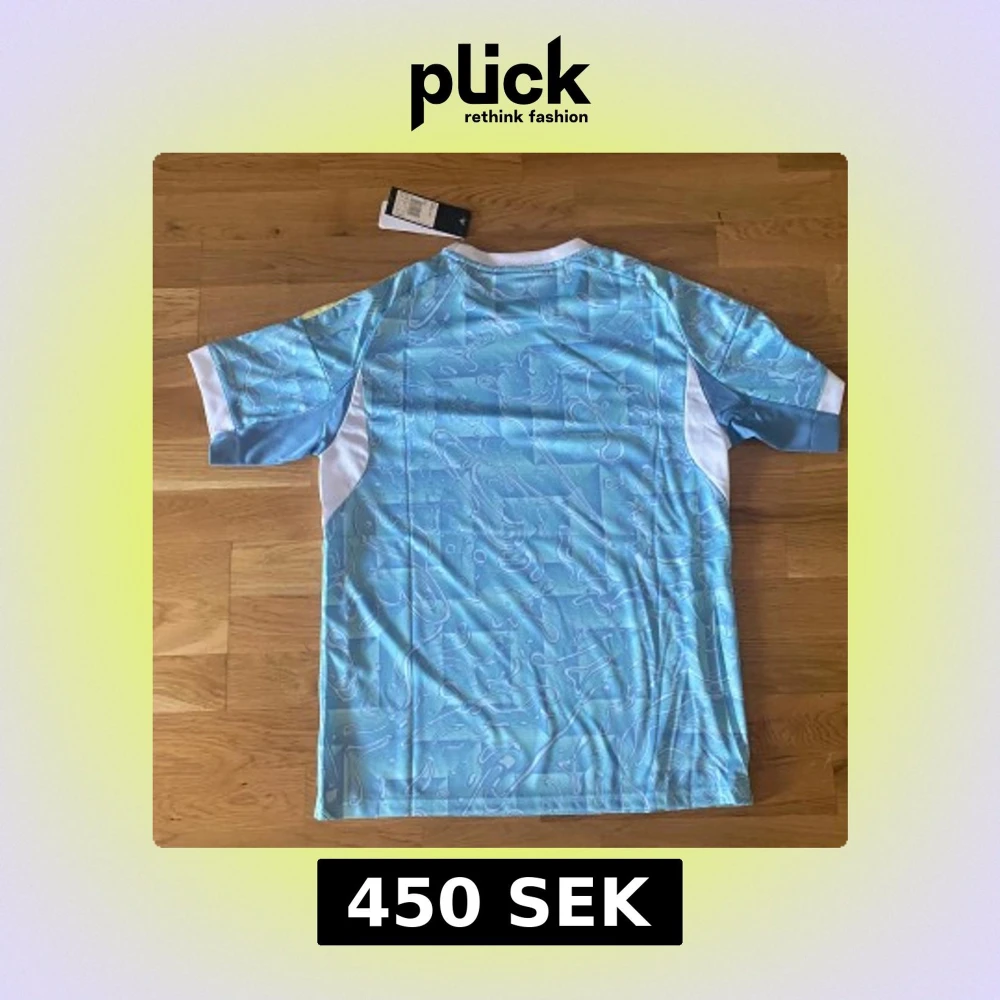 Juventus fotbollströja från Adidas i ljusblått med unikt abstrakt mönster, vita detaljer och gula ränder på axlarna. Tröjan har korta ärmar, rund hals och är tillverkad i ett lätt, ventilerande material. Perfekt för dig som vill sticka ut på planen.