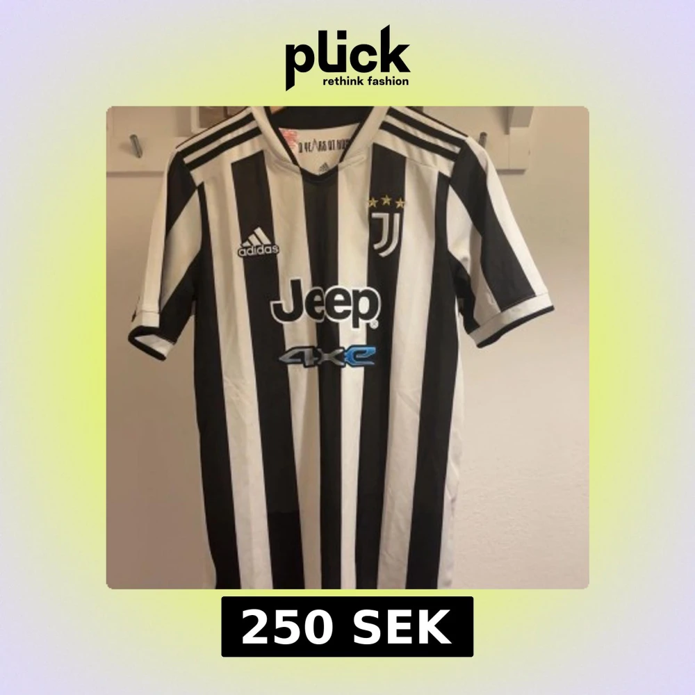 Juventus officiella hemmatröja från Adidas med klassiska svarta och vita ränder, broderat klubbmärke med tre stjärnor och Jeep-sponsor på bröstet. Tillverkad i lätt och ventilerande Primegreen-material. Perfekt för dig som älskar fotboll och vill visa ditt stöd för Juve.