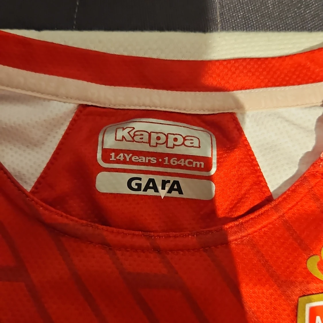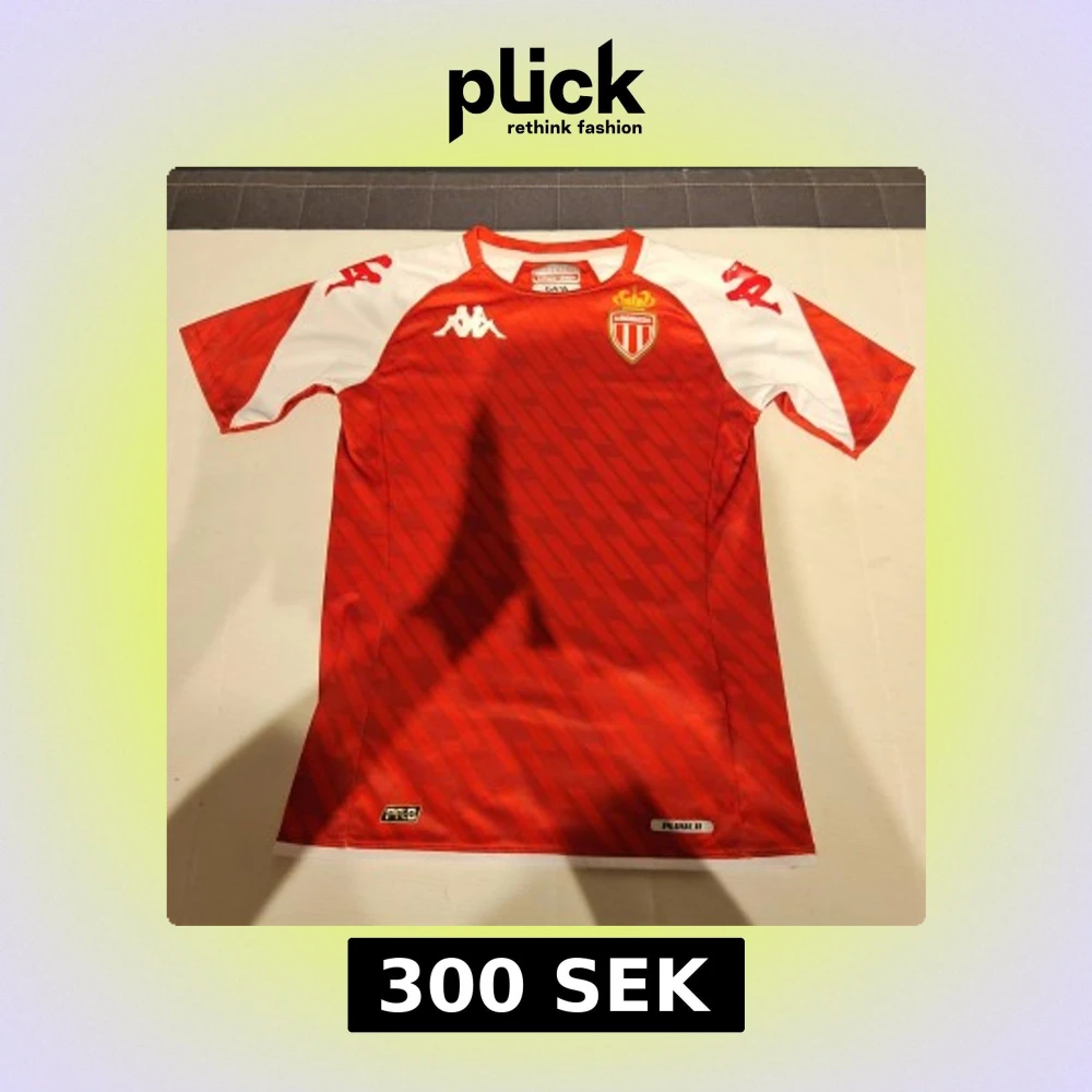 AS Monaco matchtröja från Kappa i rött och vitt med diagonalt mönster. Kortärmad modell med klubbmärke på bröstet och Kappa-loggor på axlarna. Tillverkad i lätt och ventilerande polyester, perfekt för träning eller match. Köpte den när jag var på semester i Monaco och nu så passar den inte mig längre så nu ska jag sälja den.