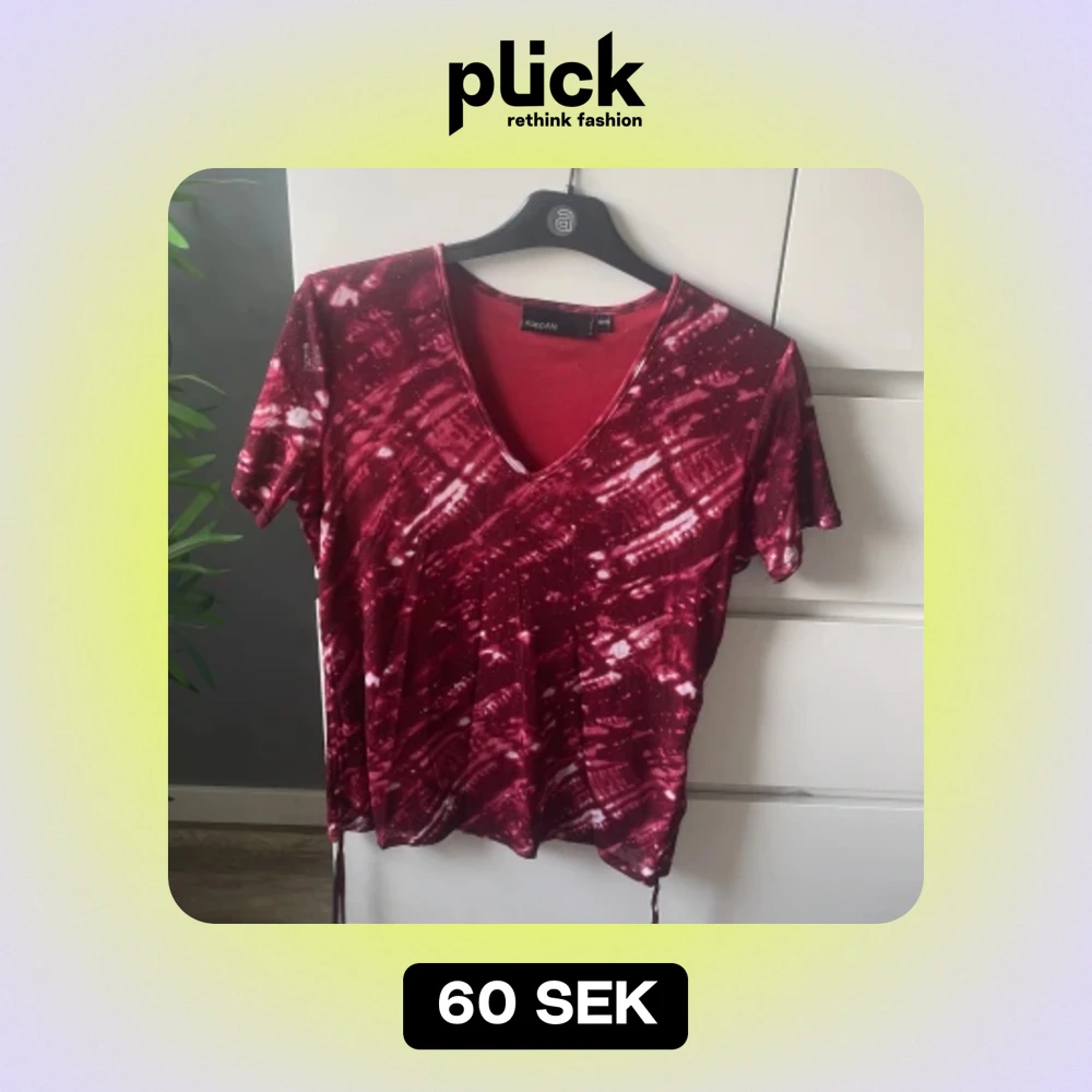 Säljer denna vinröda v-ringade t-shirten. Storlek 46-48, passar mig som är 14 år och 165cm.❤️