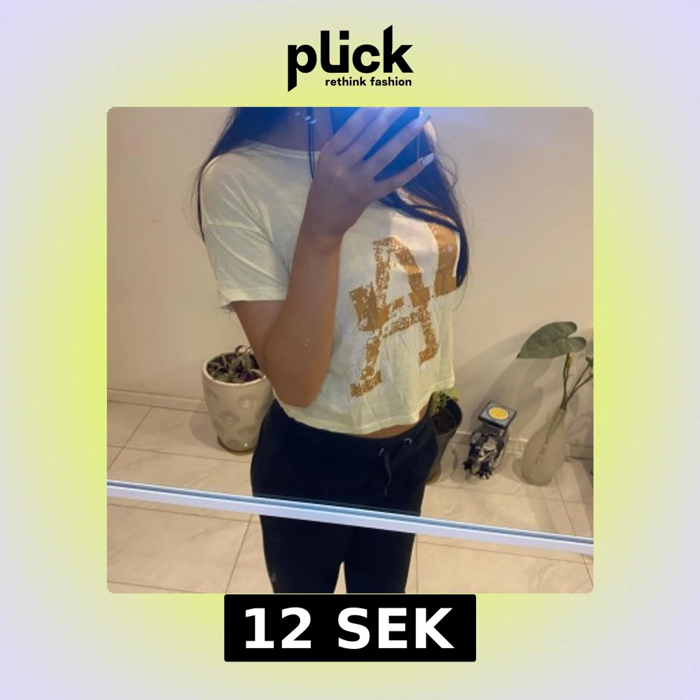 Snygg vit t-shirt med ett stort guldtryck av bokstäverna 'LA' på framsidan. Perfekt för en avslappnad stil. Kortärmad och i en skön bomullsmix.