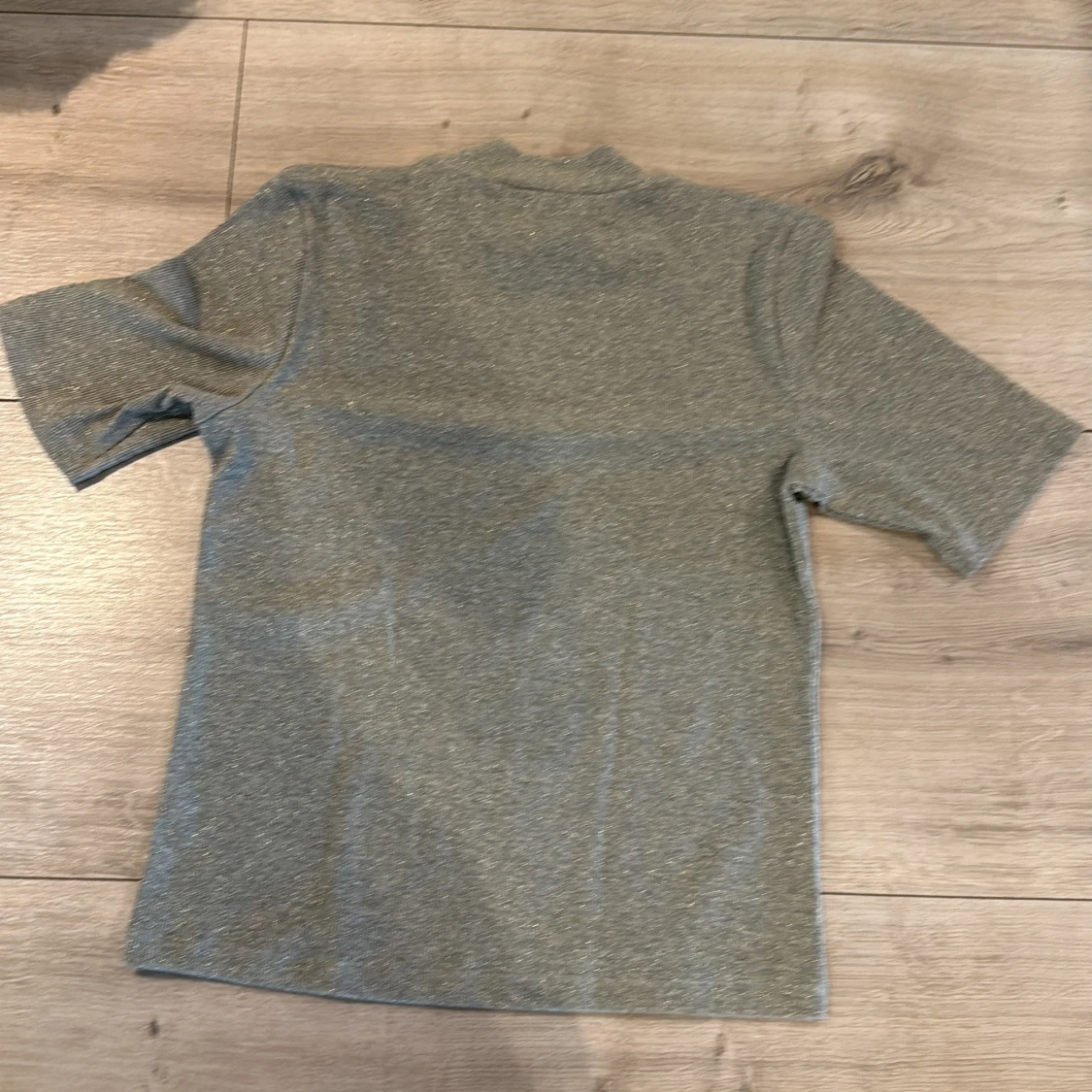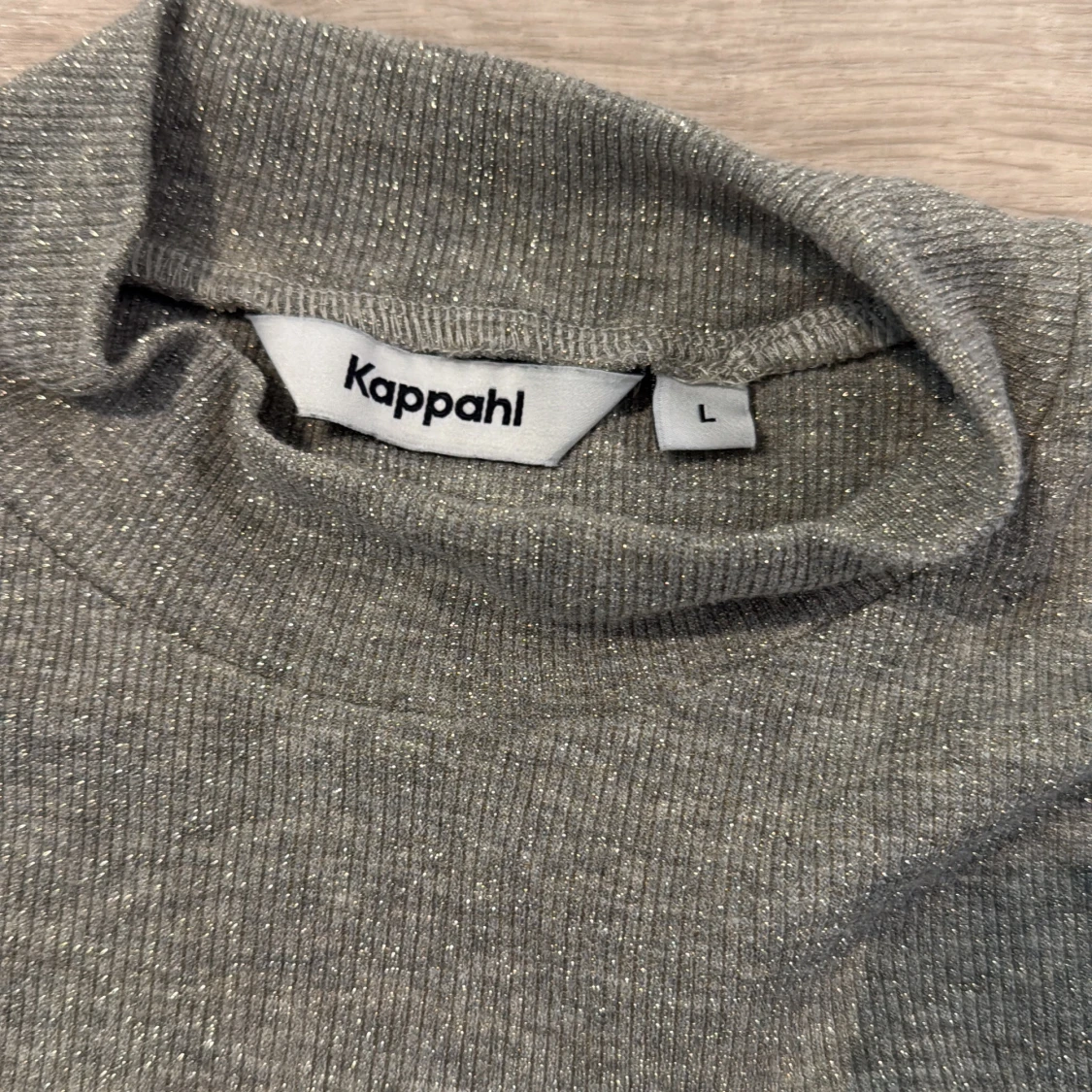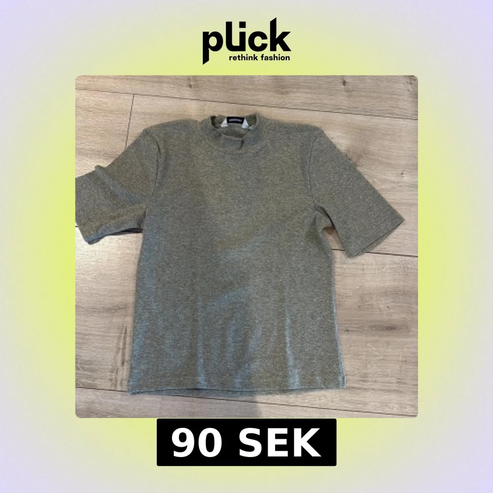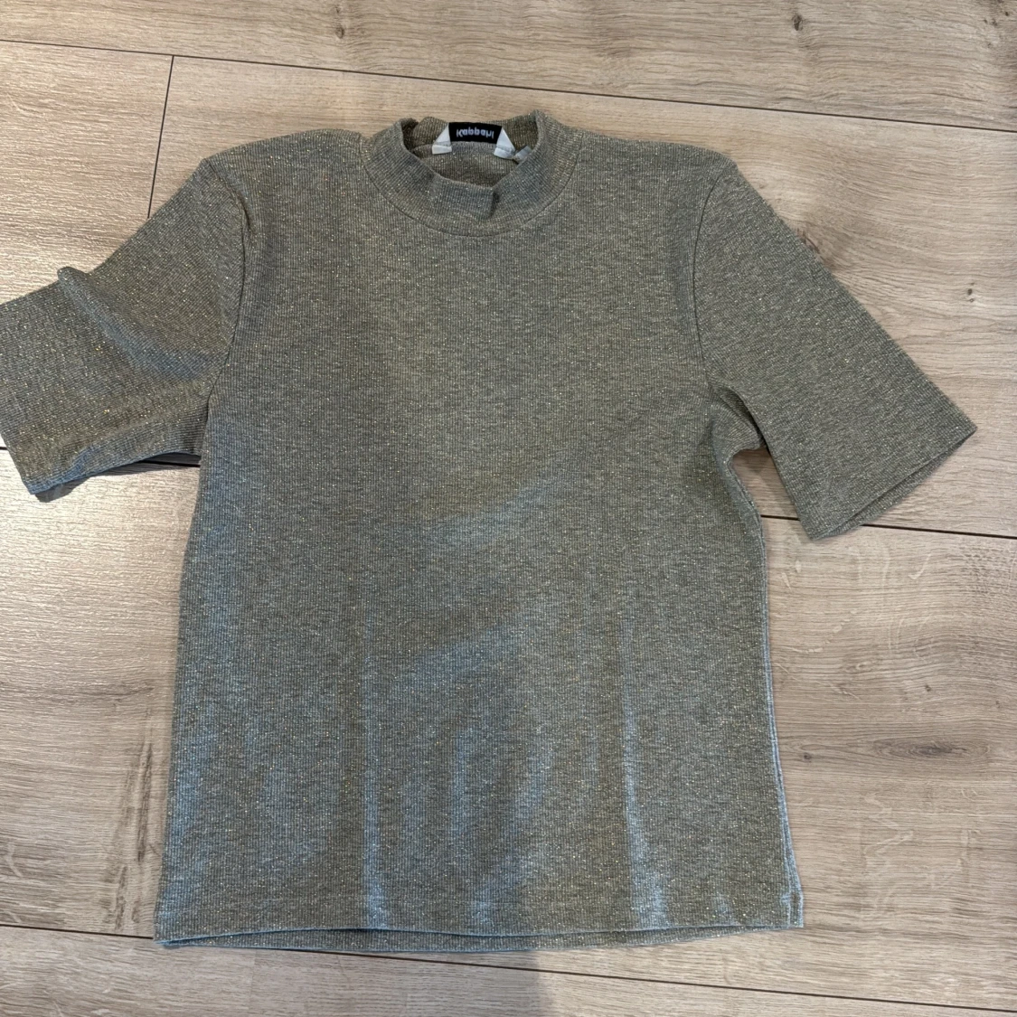 Snygg grå t-shirt från Kappahl i storlek L med glittriga detaljer. T-shirten har korta ärmar, ribbad struktur och en lite högre halsringning. Perfekt för dig som vill sticka ut lite extra med en enkel men cool look.