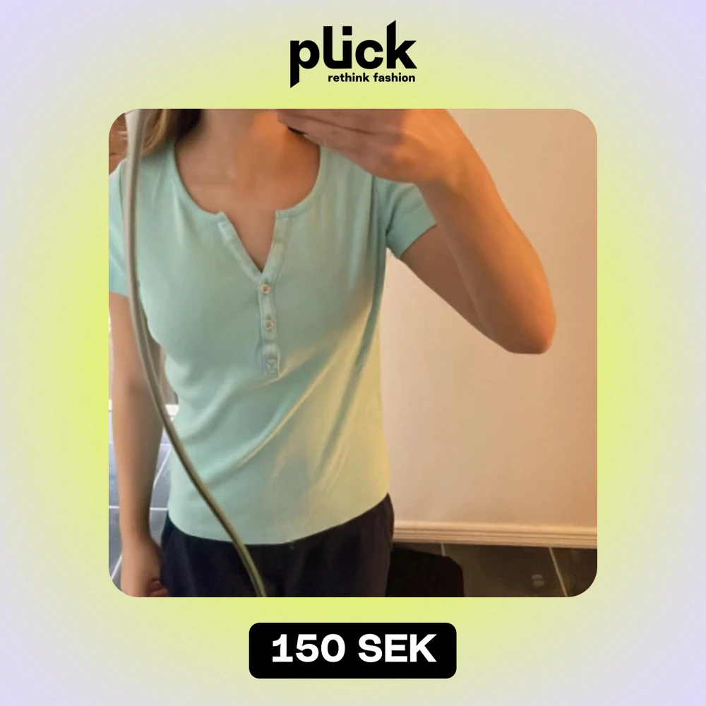 En turkos t-shirt med knappar. Den är från Kappahl och är i storlek s men passar med xs.💞💞