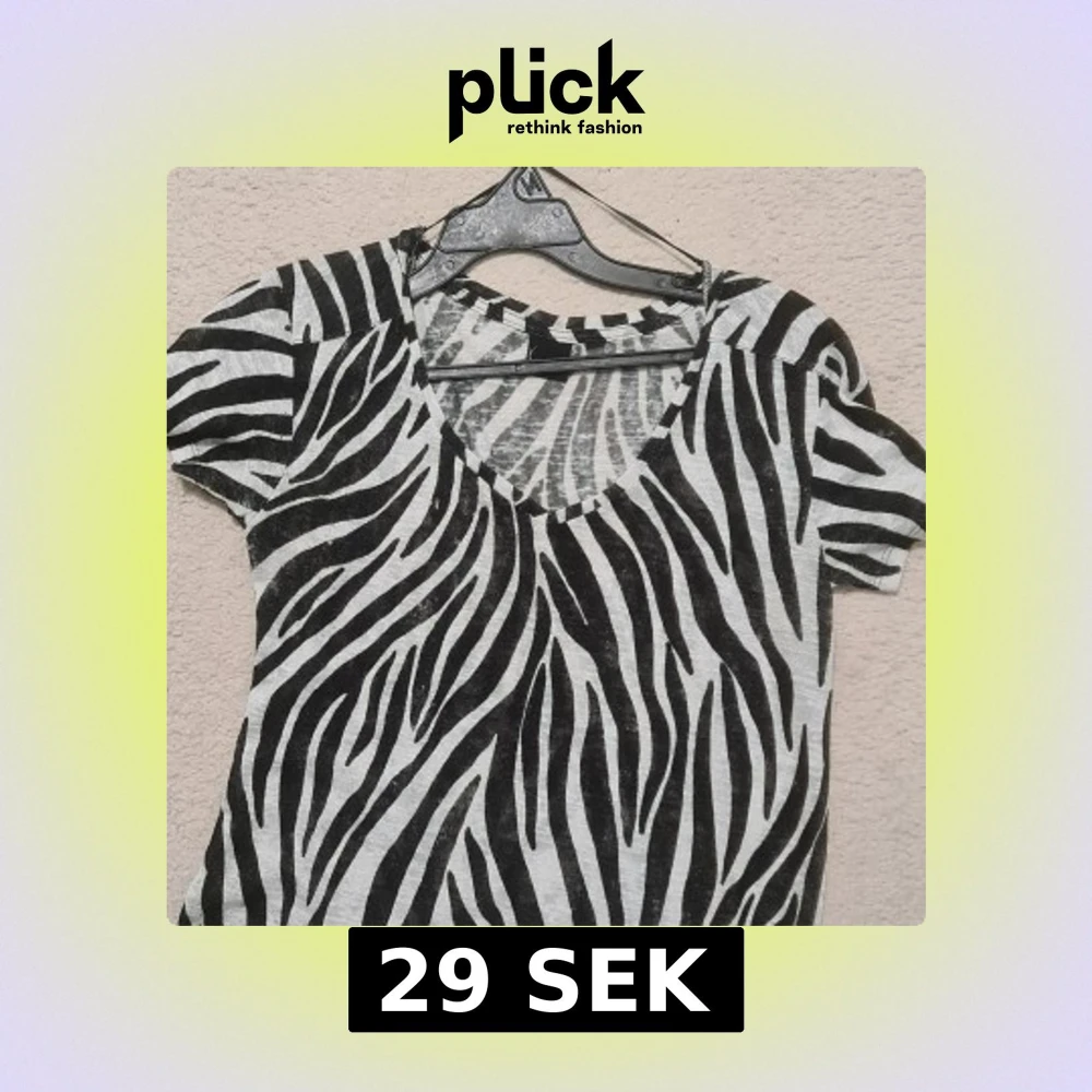 Snygg t-shirt från KappAhl i storlek XS med svartvitt zebramönster. Modellen har korta ärmar och en djup v-ringad hals. Materialet är mjukt och lätt, perfekt för dig som gillar att sticka ut med coola mönster. Passformen är normal och t-shirten är riktigt bekväm.